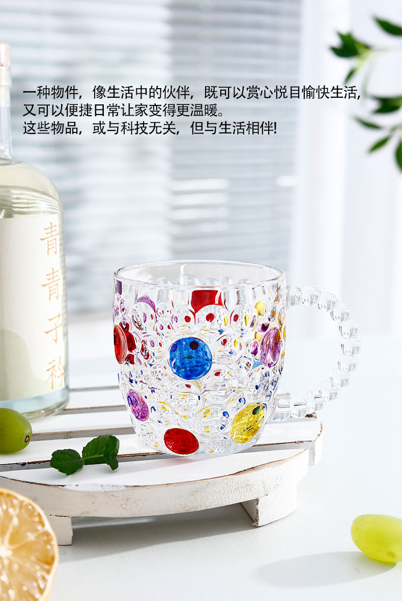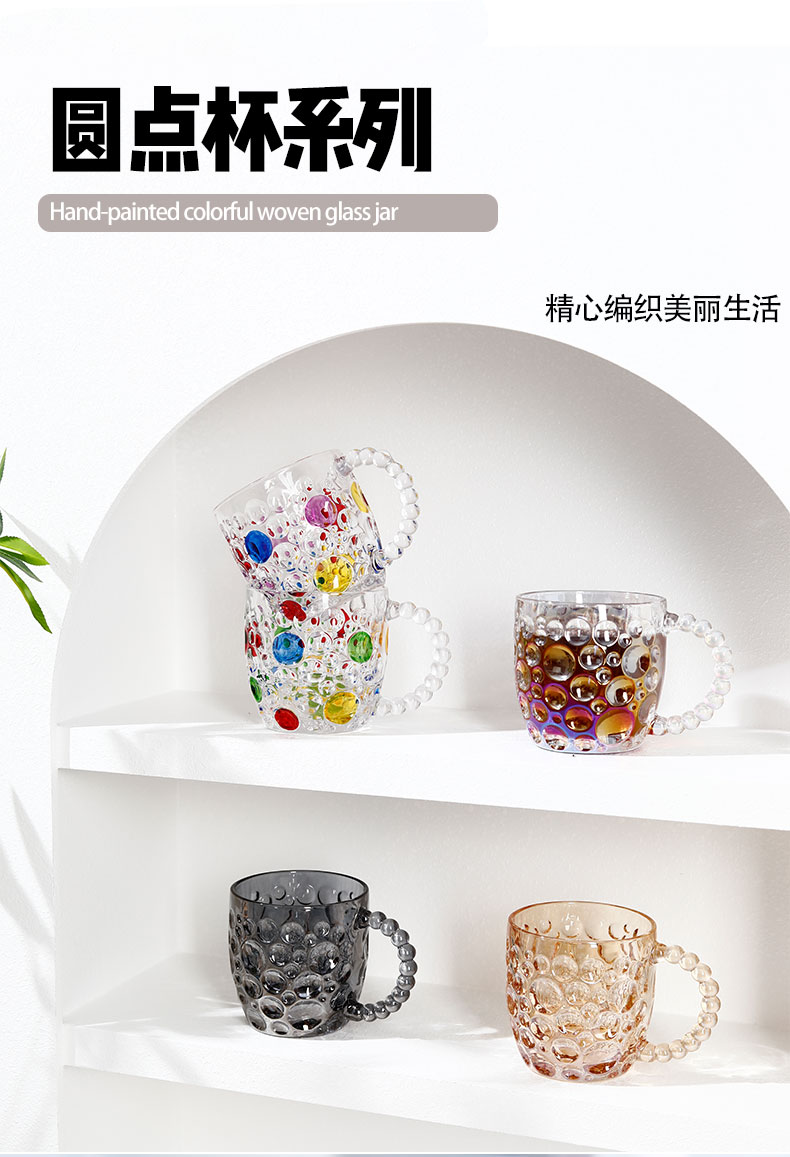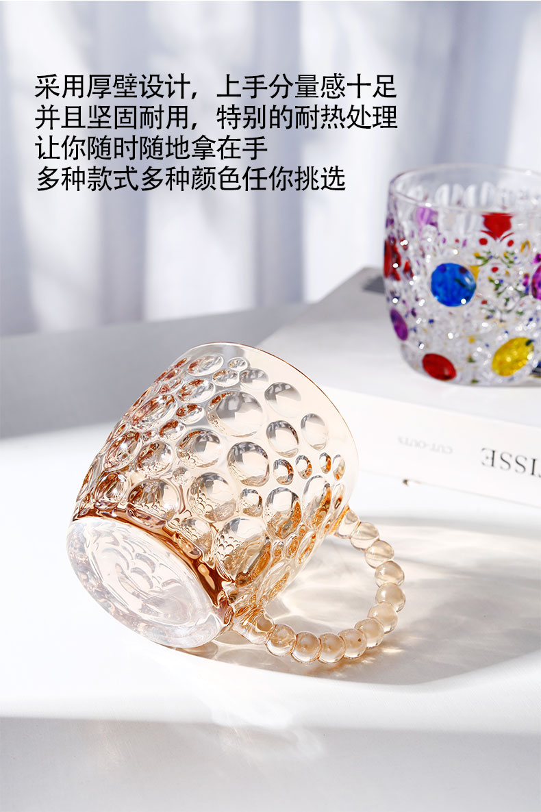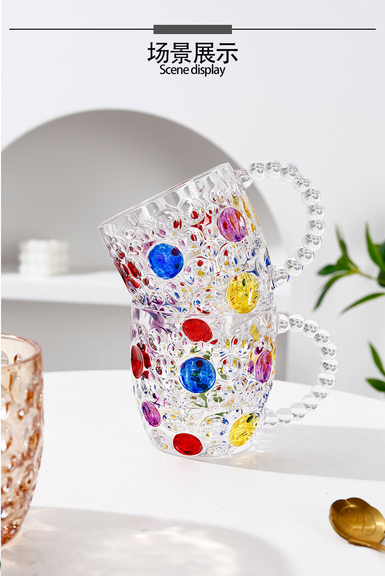 锦璃创意幻彩少女手绘圆点气泡珠把手杯玻璃杯耐热加厚牛奶咖啡杯