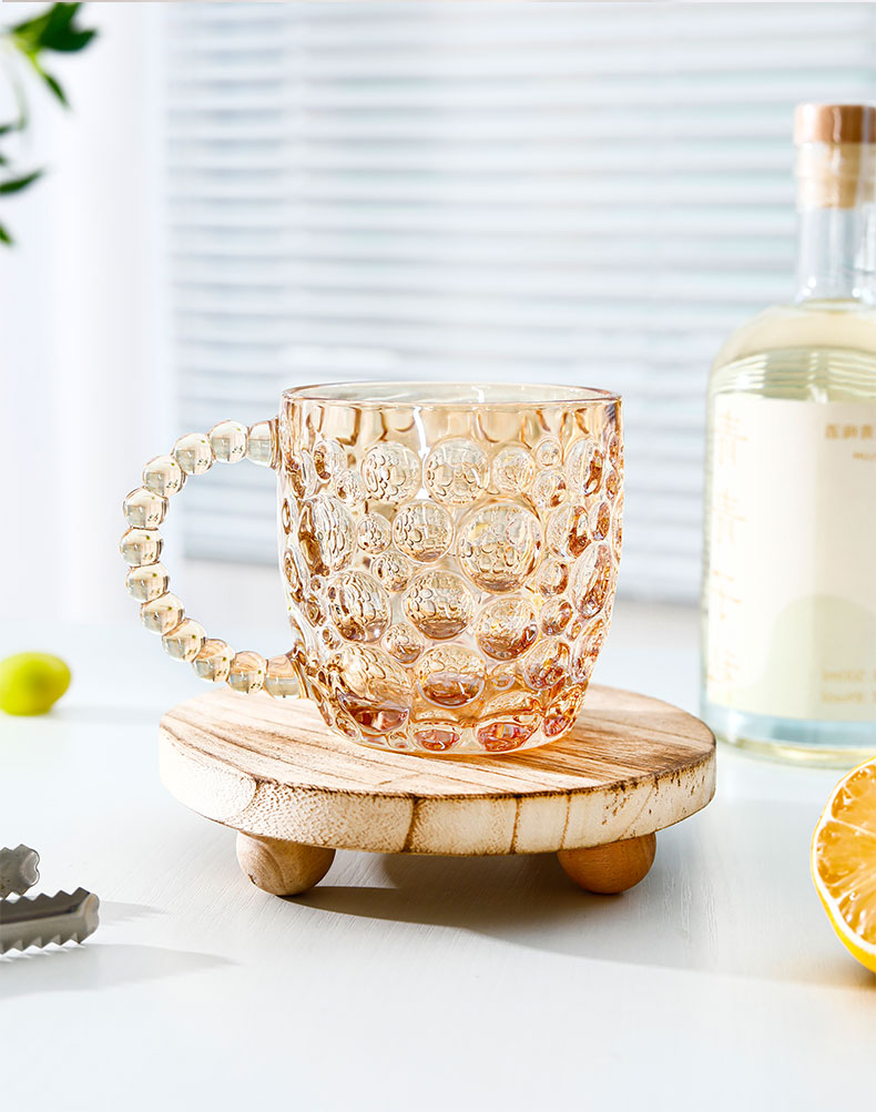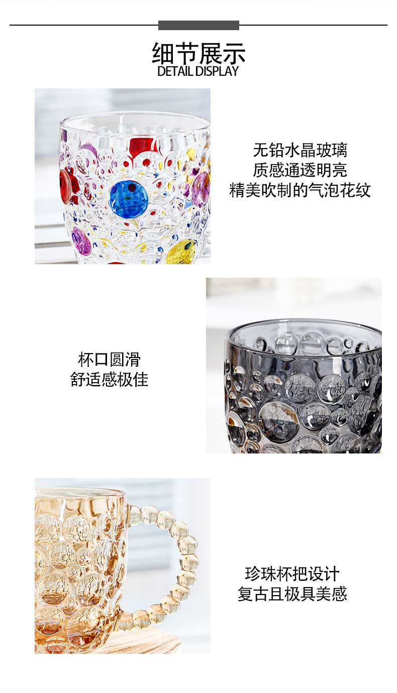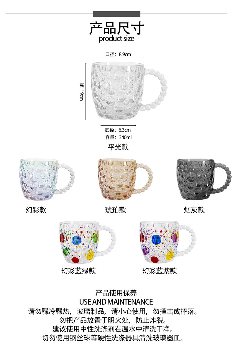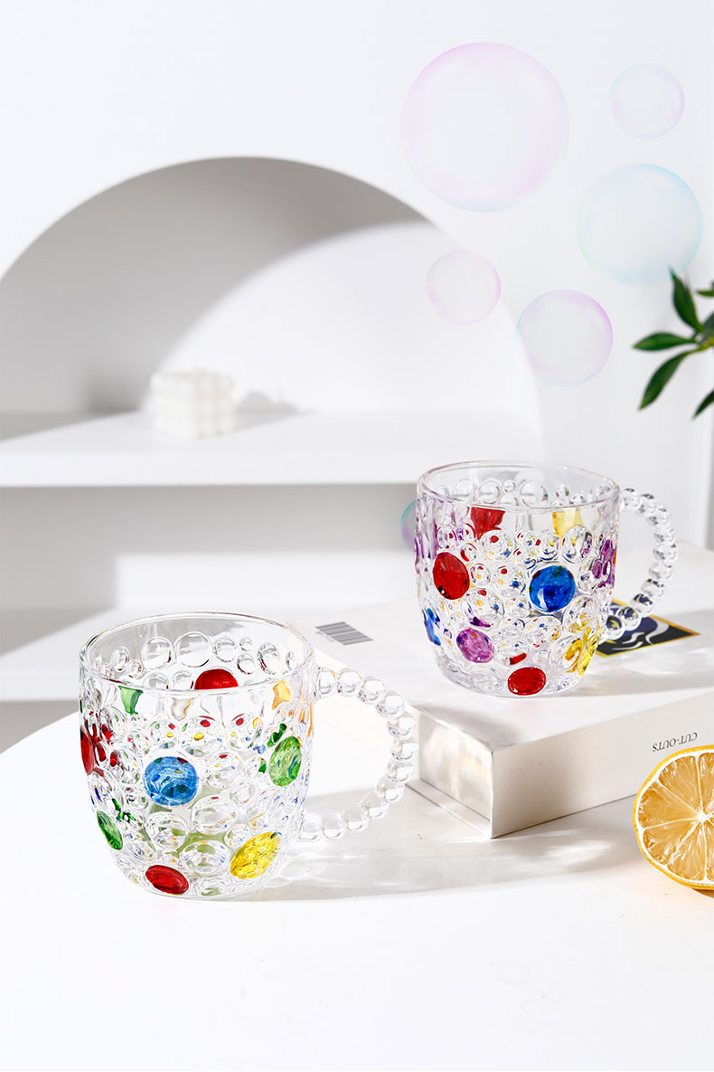 锦璃创意幻彩少女手绘圆点气泡珠把手杯玻璃杯耐热加厚牛奶咖啡杯