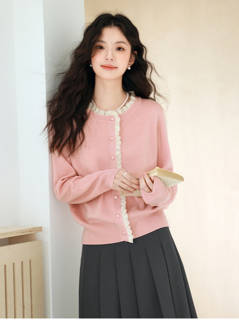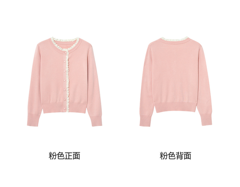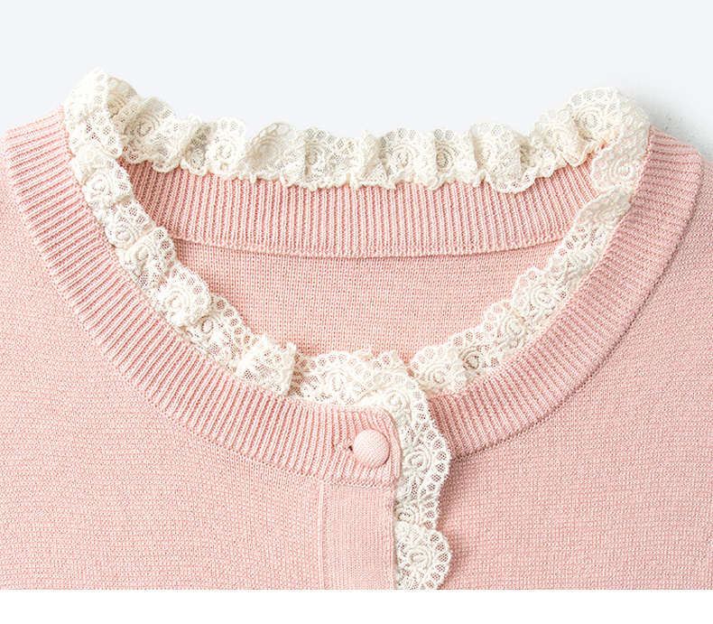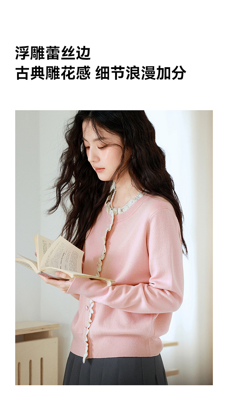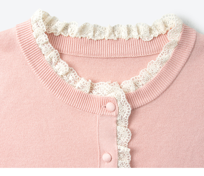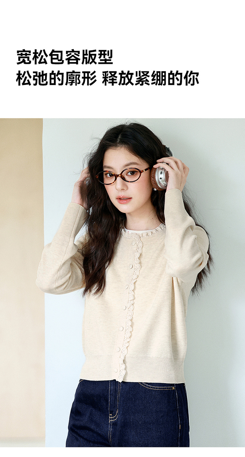 【严选】诗凡黎拼接花边蕾丝领针织衫25春新品复古千金风内搭洋气开衫上衣7G2231131