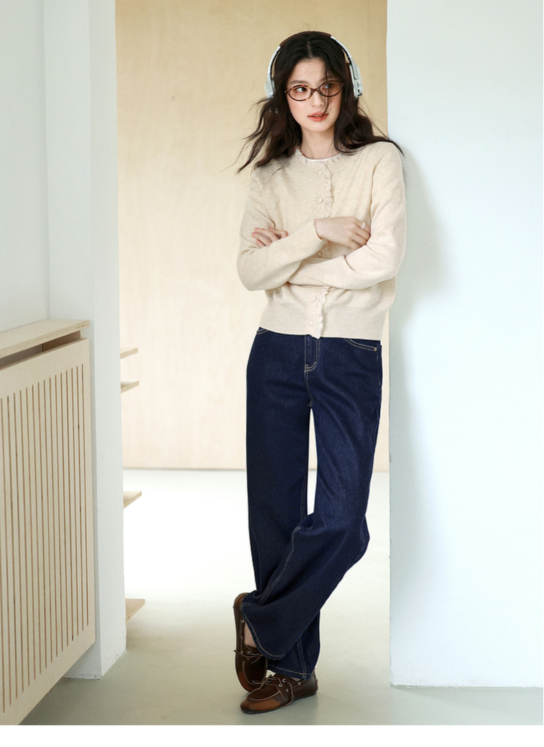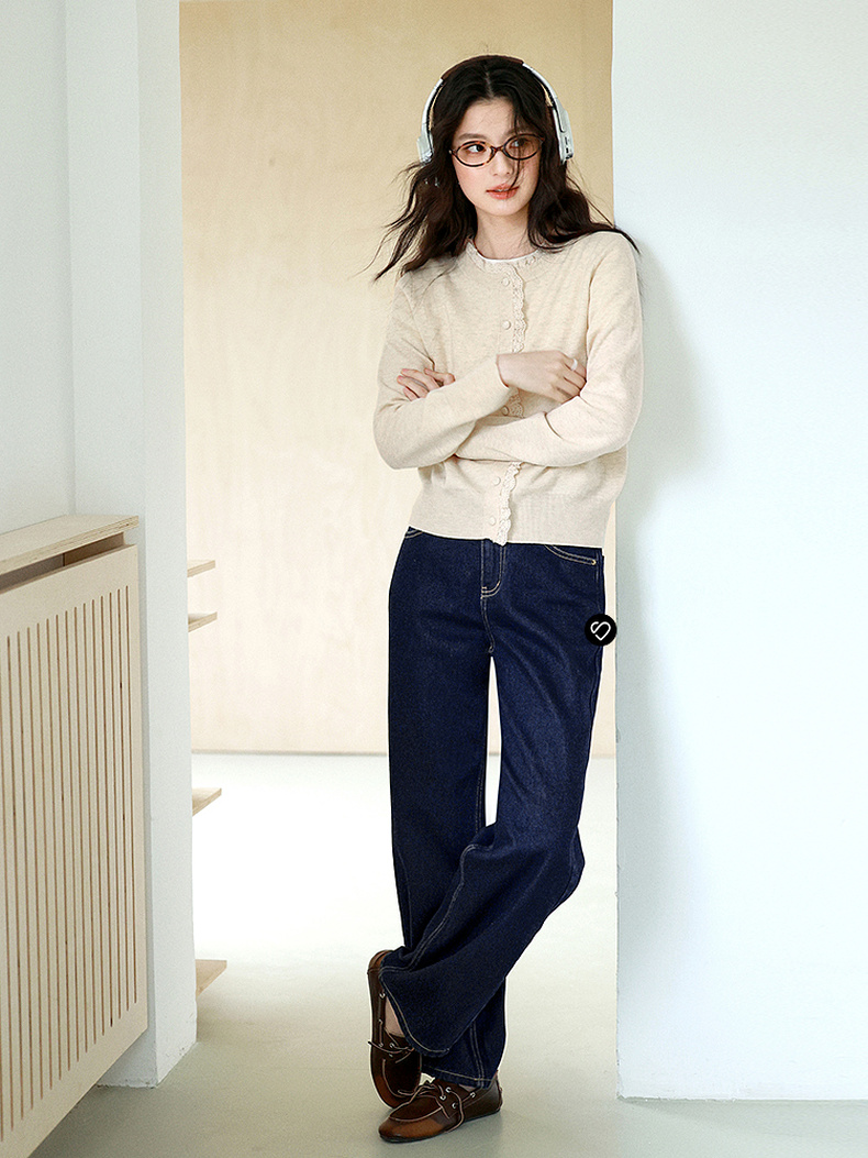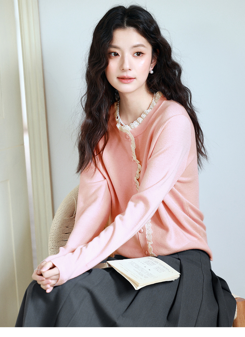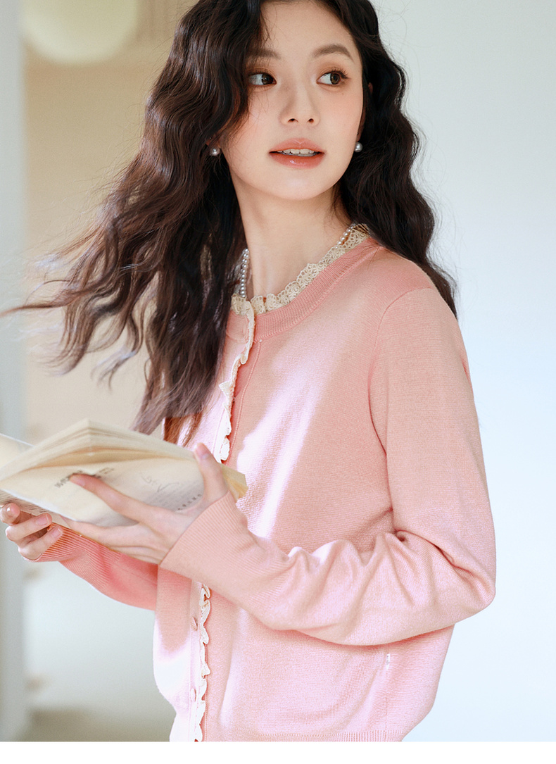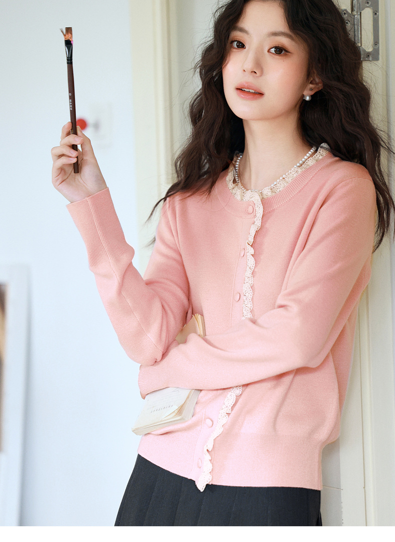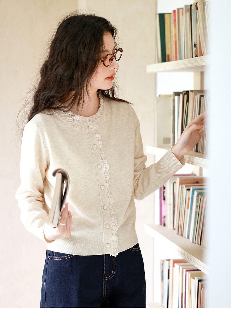 【严选】诗凡黎拼接花边蕾丝领针织衫25春新品复古千金风内搭洋气开衫上衣7G2231131