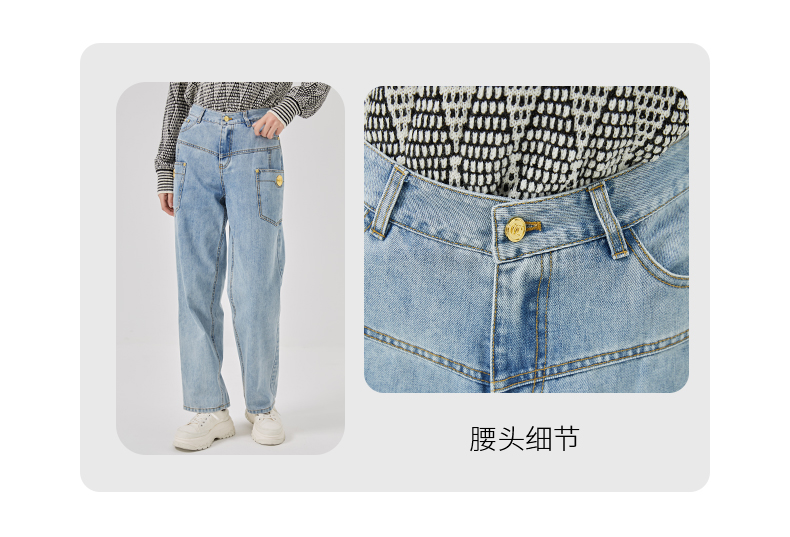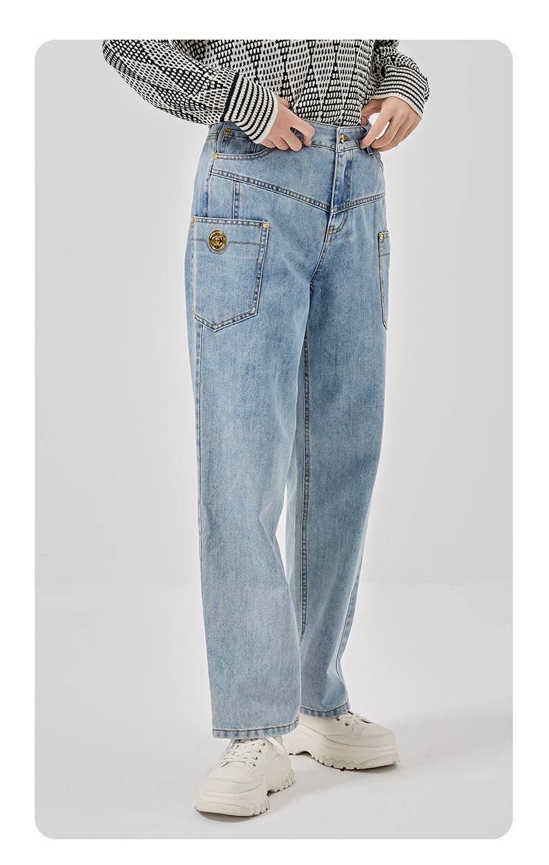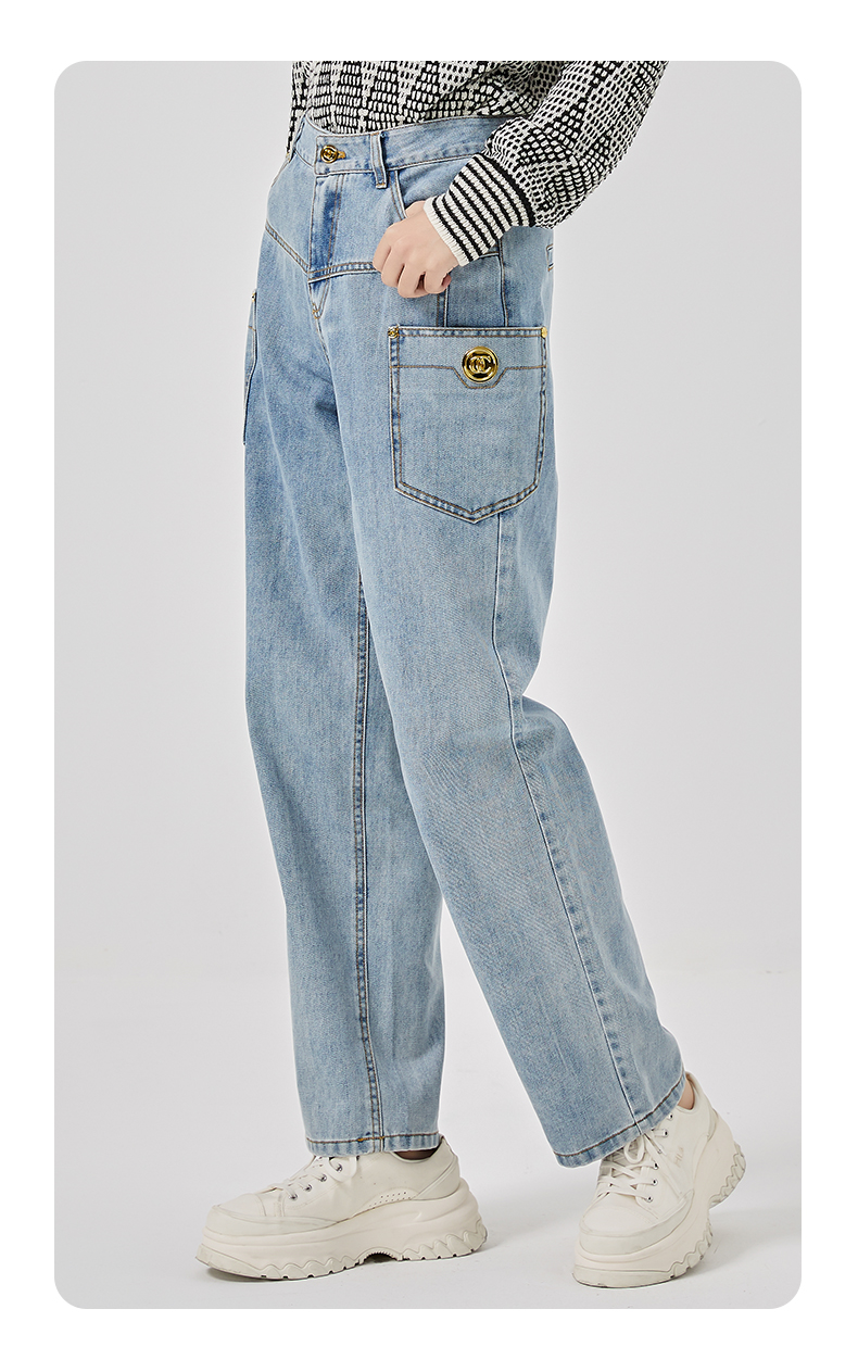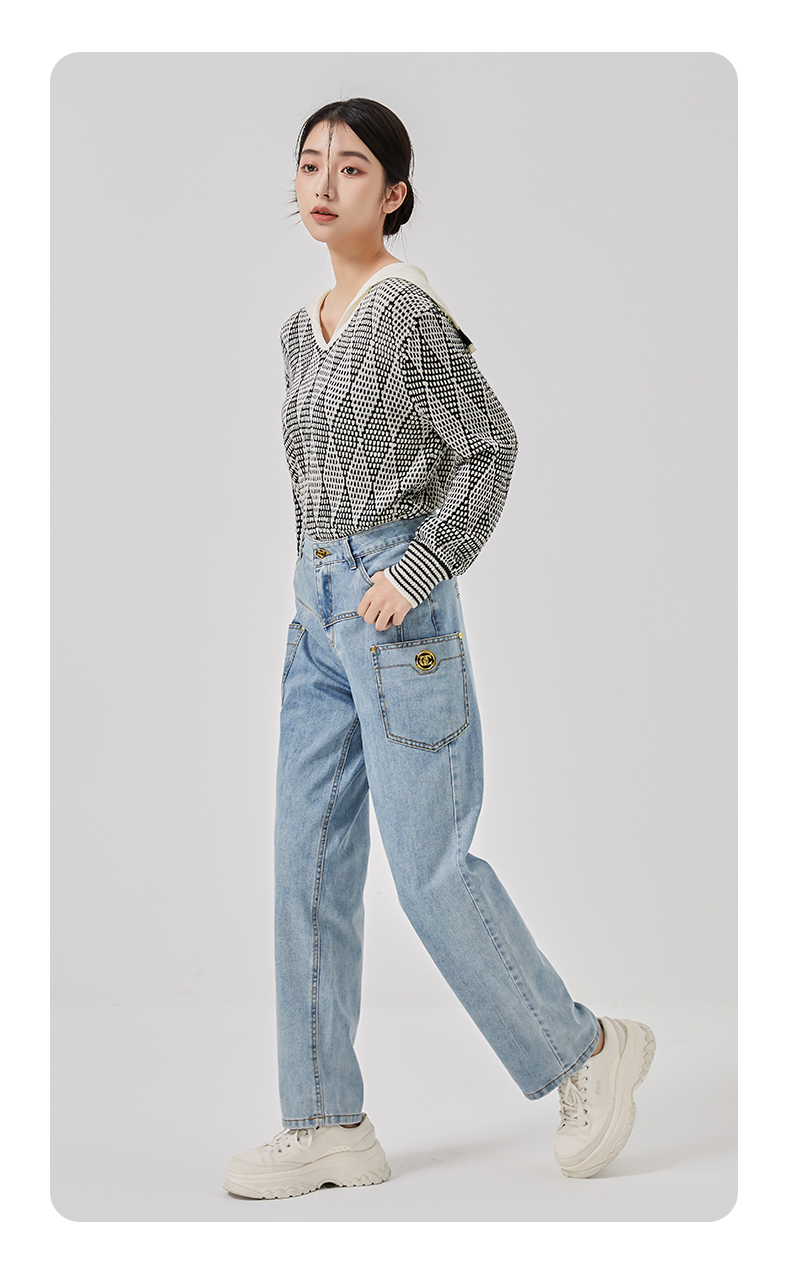 oldcolour2023春新款蓝色高腰直筒宽松显瘦百搭牛仔裤女O11113124