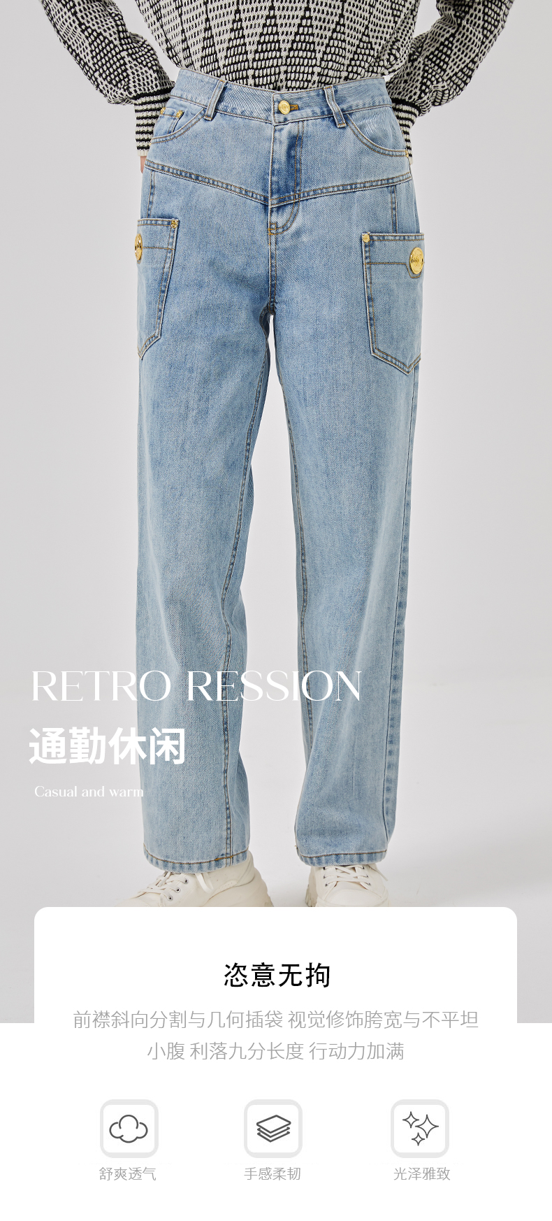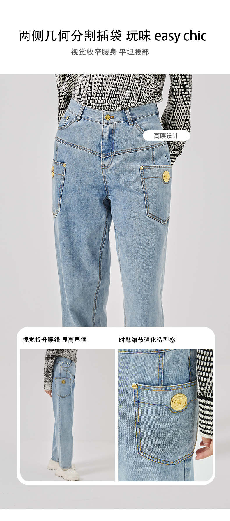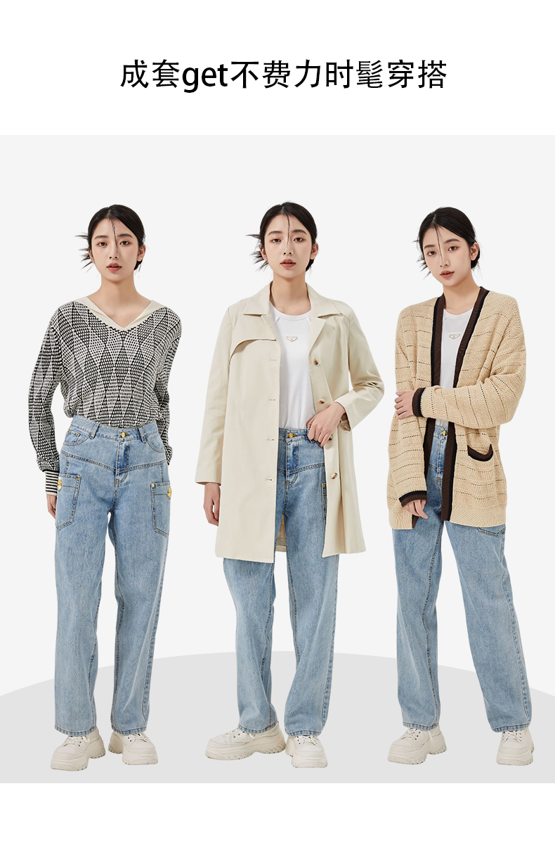 oldcolour2023春新款蓝色高腰直筒宽松显瘦百搭牛仔裤女O11113124