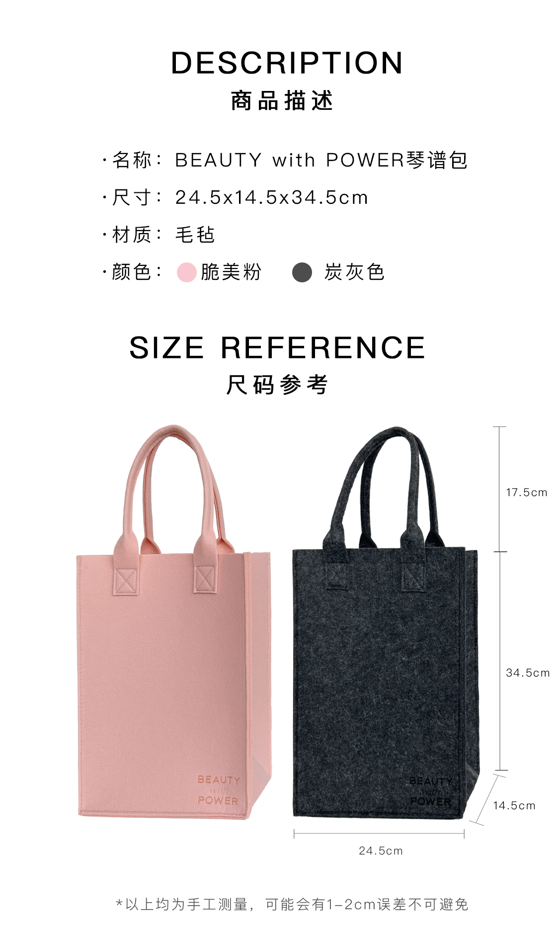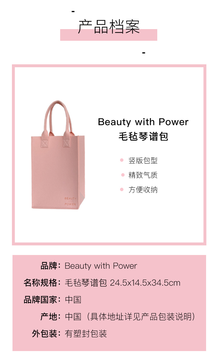 脆美定制|Beauty with Power 毛毡琴谱包 竖版包型 精致气质 方便收纳 24.5 x 14.5 x 34.5cm