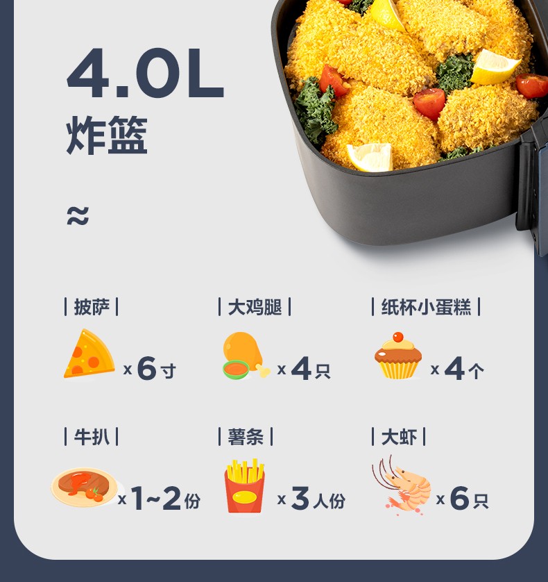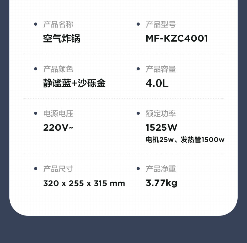 【新品家电】美的(Midea)空气炸锅 家用智能无油煎炸锅多功能全息触屏4L容量不粘锅电炸锅KZC4001(线下同款)