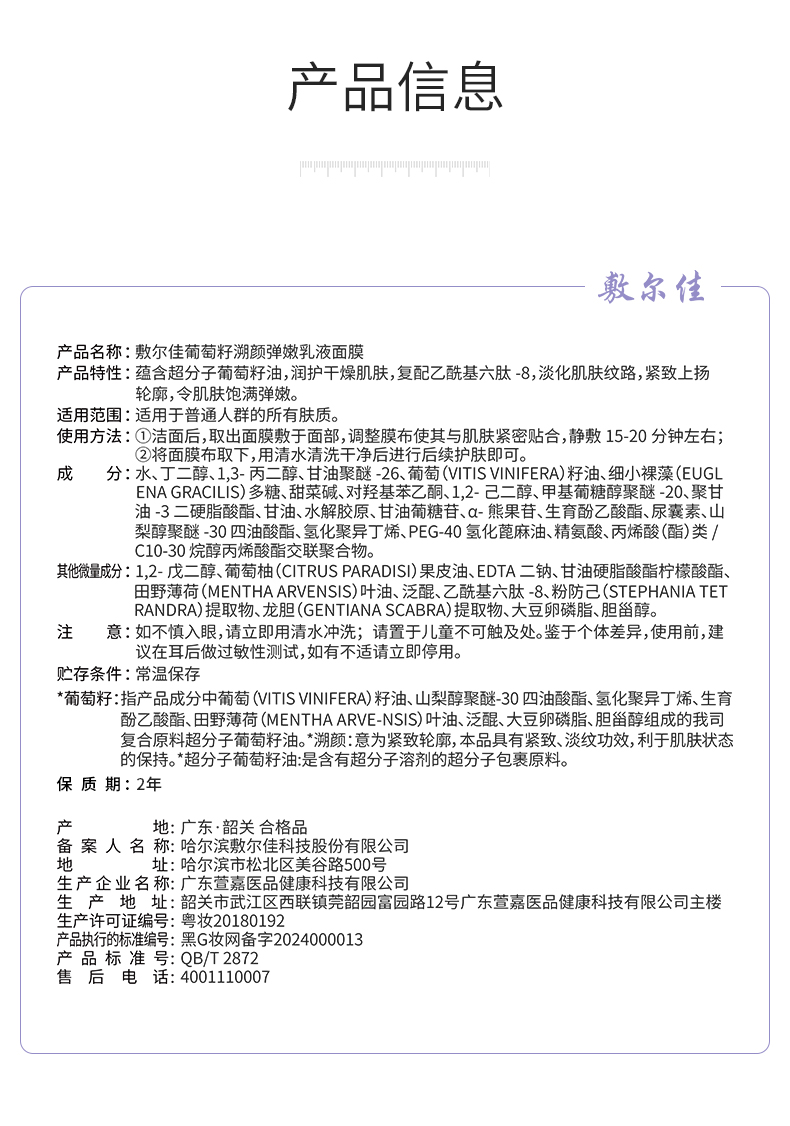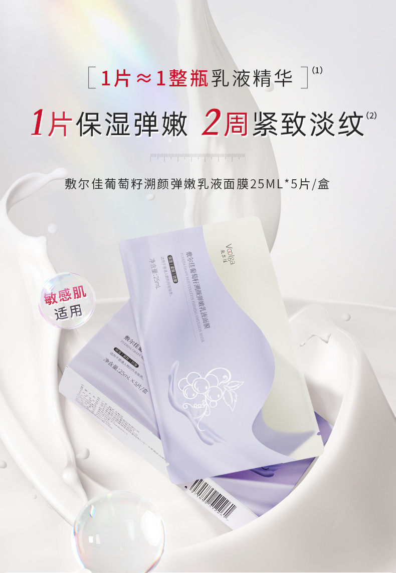 敷尔佳葡萄籽溯颜弹嫩乳液面膜1盒