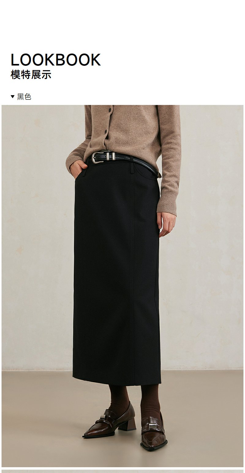 NEELLY纳俪商场同款冬新款高级感羊毛保暖高腰半裙女通勤显瘦长裙N25104E04536