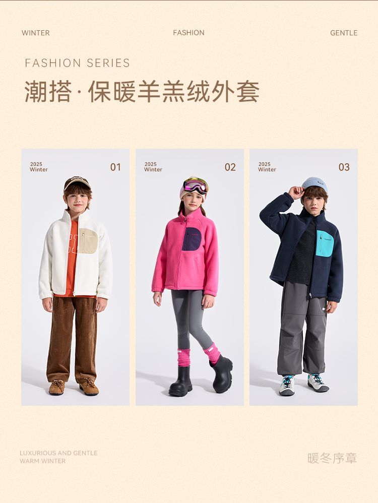 【英氏】【110-175】男女童加绒羊羔绒外套