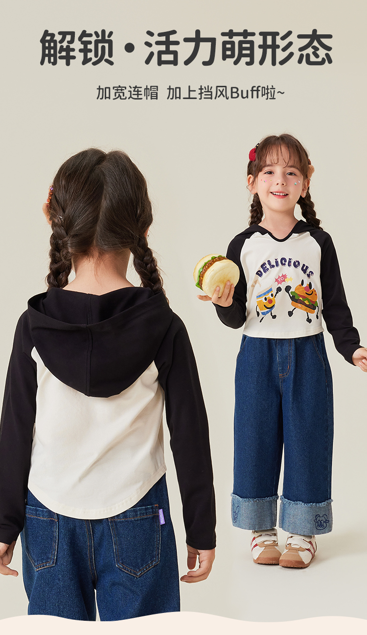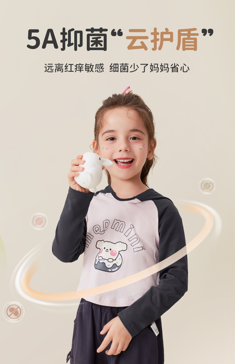 【5A抑菌】【90-140】【MQDmini】女童春秋款抑菌长袖连帽T恤