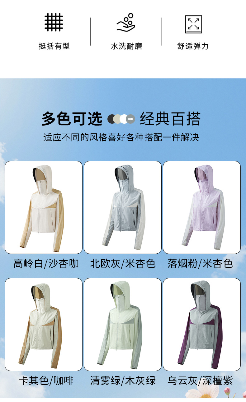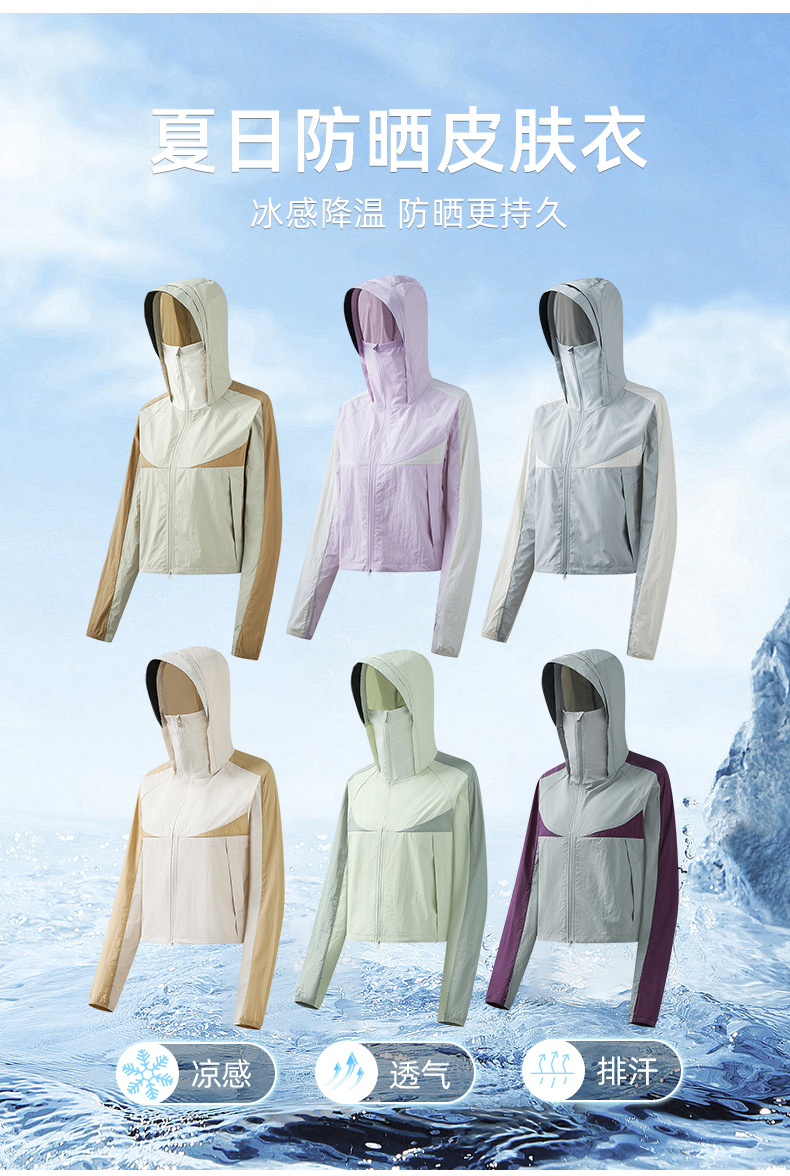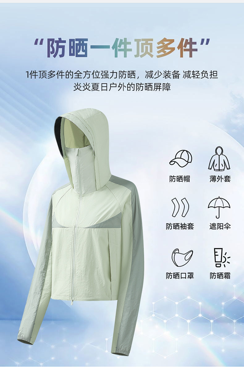 品牌同款!【特妮娜 轻薄防晒皮肤衣】男女同款 独特织造工艺 透气防晒 吸汗速干 加宽连帽 冰感降温 亲肤柔顺