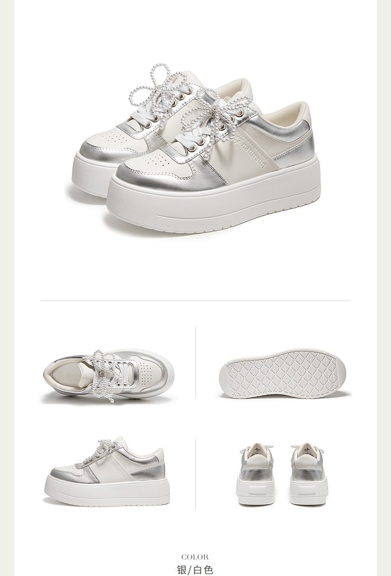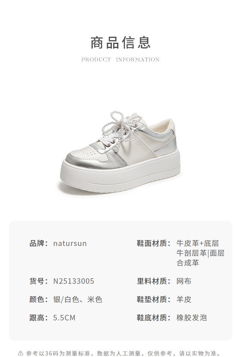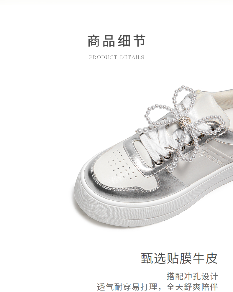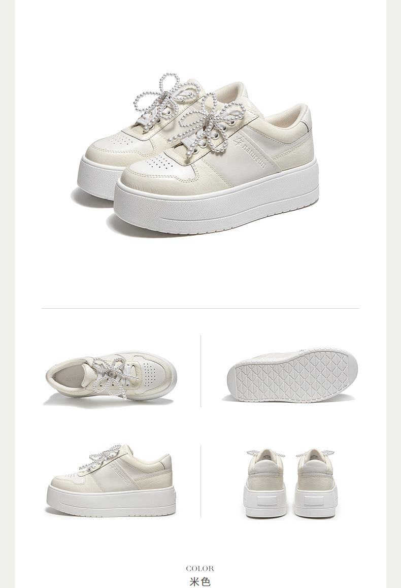 natursun厚底休闲板鞋女珍珠小白鞋不累脚通勤四季鞋N25133005