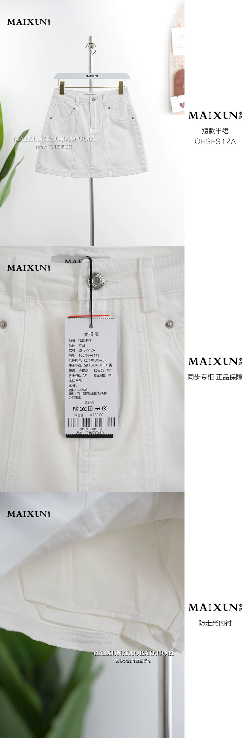 麦寻白色短款半裙QHSFS12A