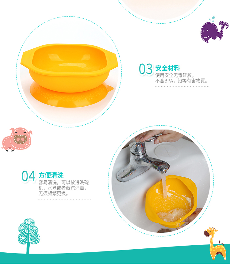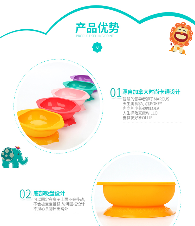 加拿大MARCUS&MARCUS婴儿防摔硅胶吸盘碗【马库狮】