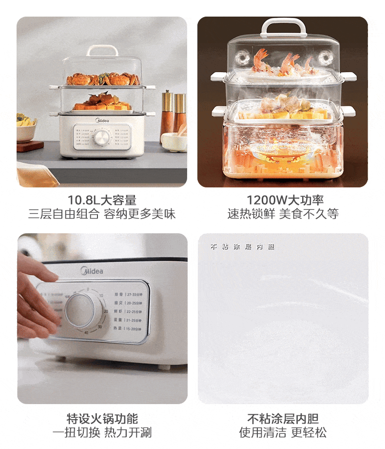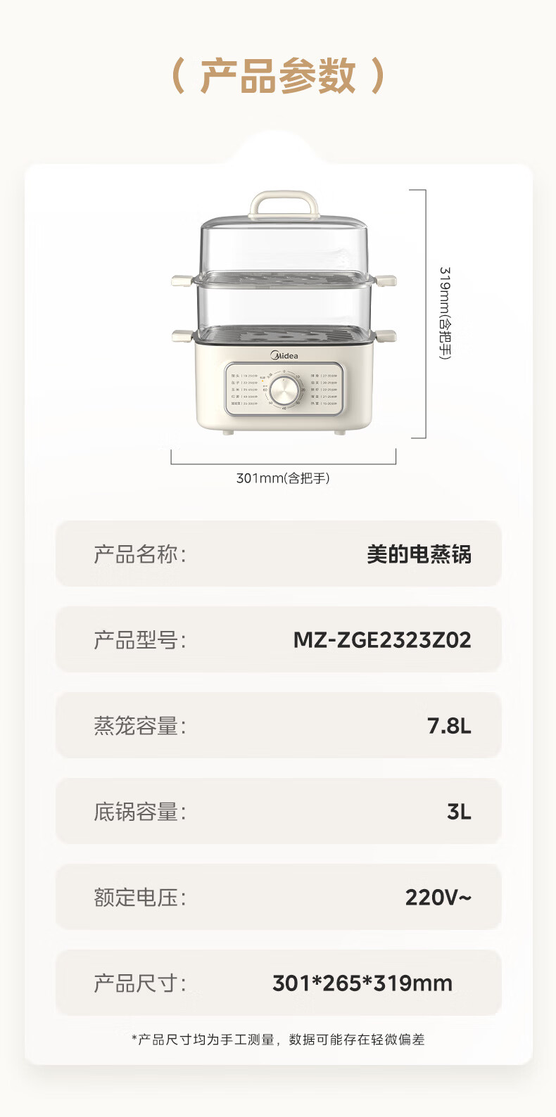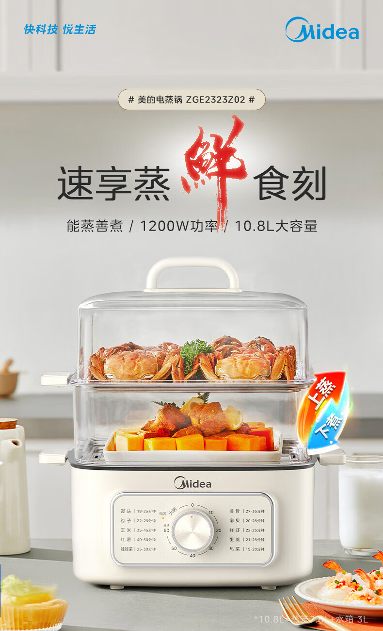 美的 电蒸锅 MZ-ZGE2323Z02【粤湾】
