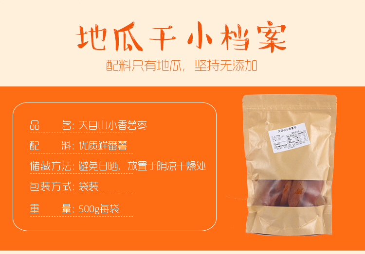 天目山小香薯枣临安特产无糖地瓜干番薯干500gX2袋包邮