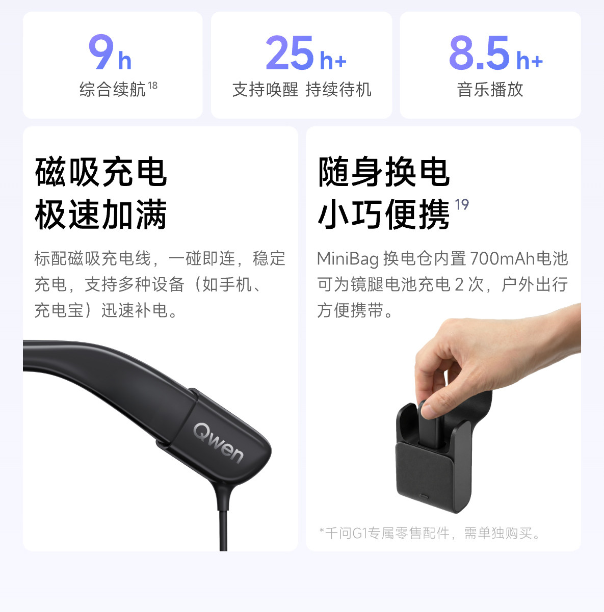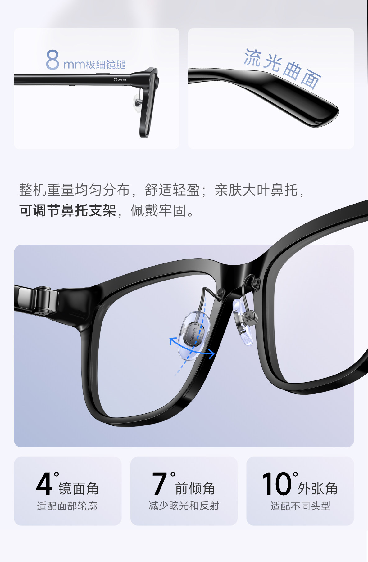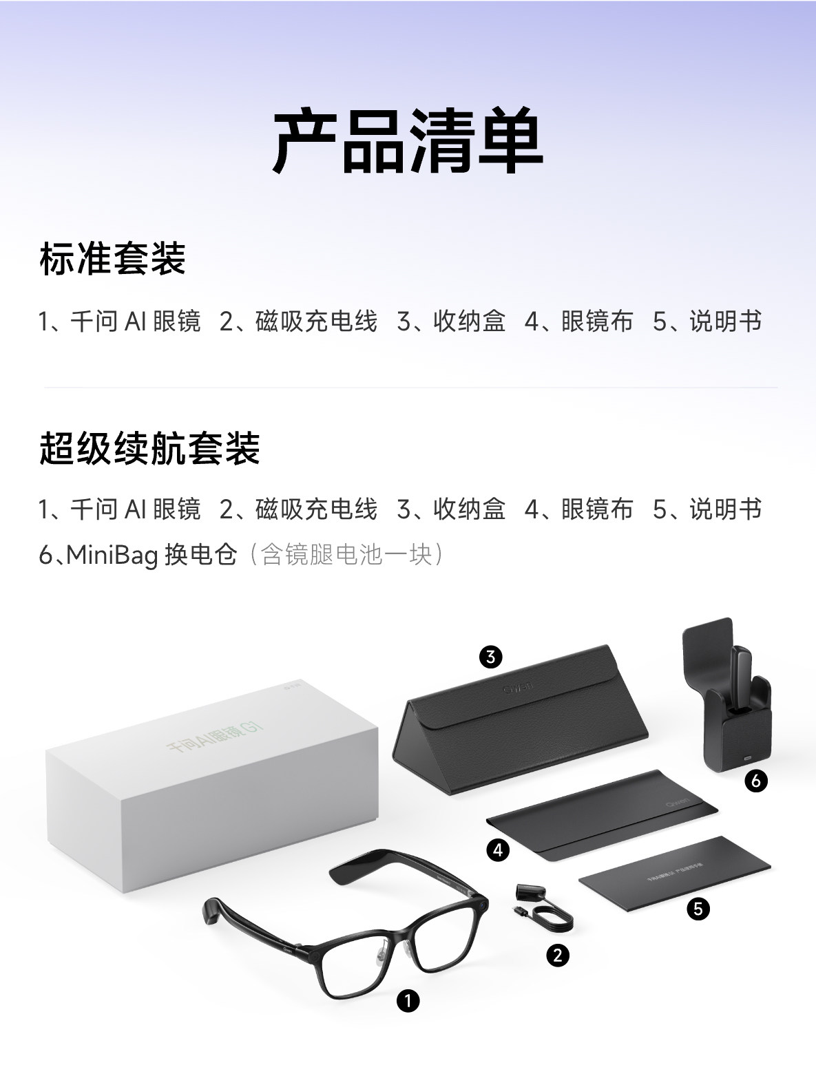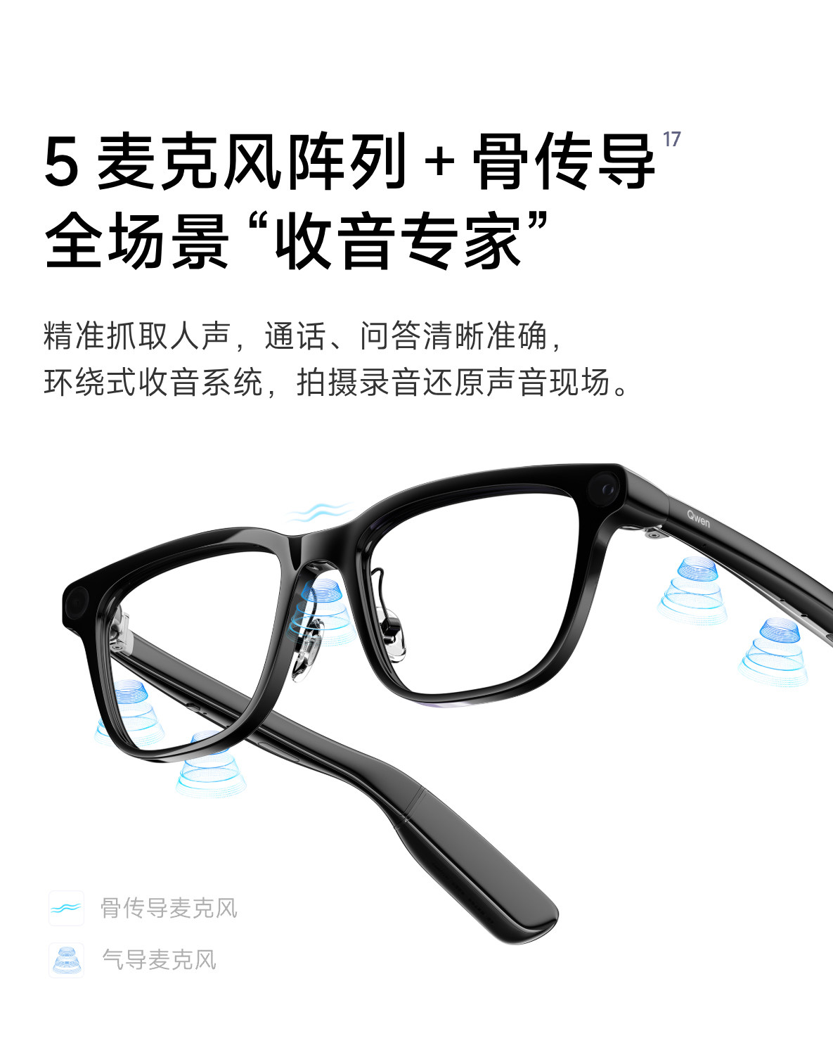 夸克 AI智能眼镜 G1 黑色威灵顿框镜架2+64GB 智能眼镜实时翻译千问AI对话助手运动相机拍照高清拍摄眼镜可换电池