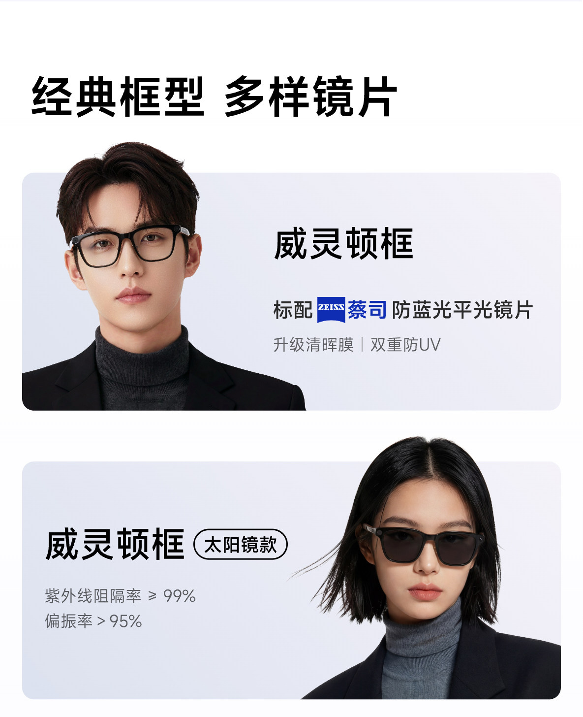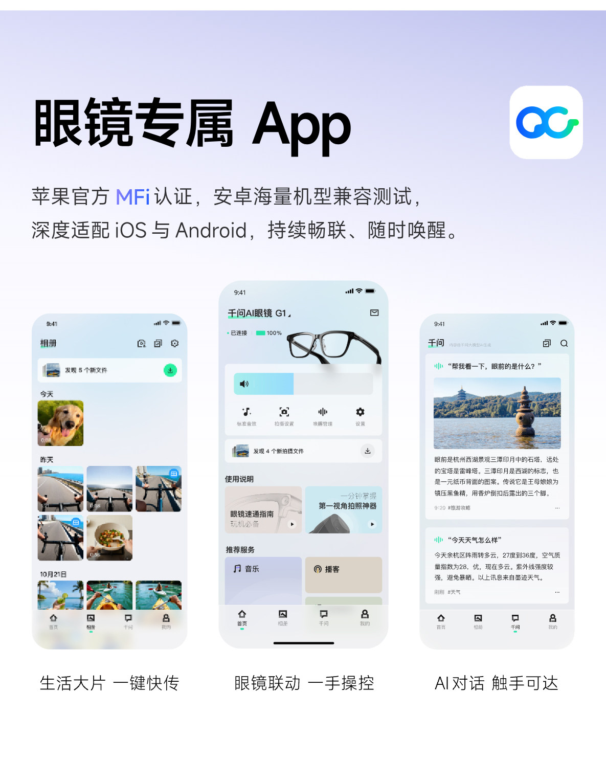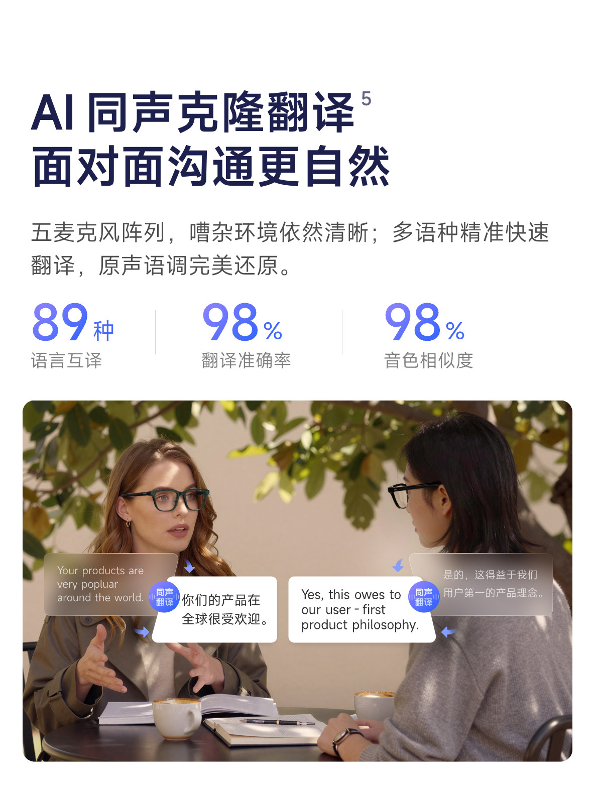 夸克 AI智能眼镜 G1 黑色威灵顿框镜架2+64GB 智能眼镜实时翻译千问AI对话助手运动相机拍照高清拍摄眼镜可换电池