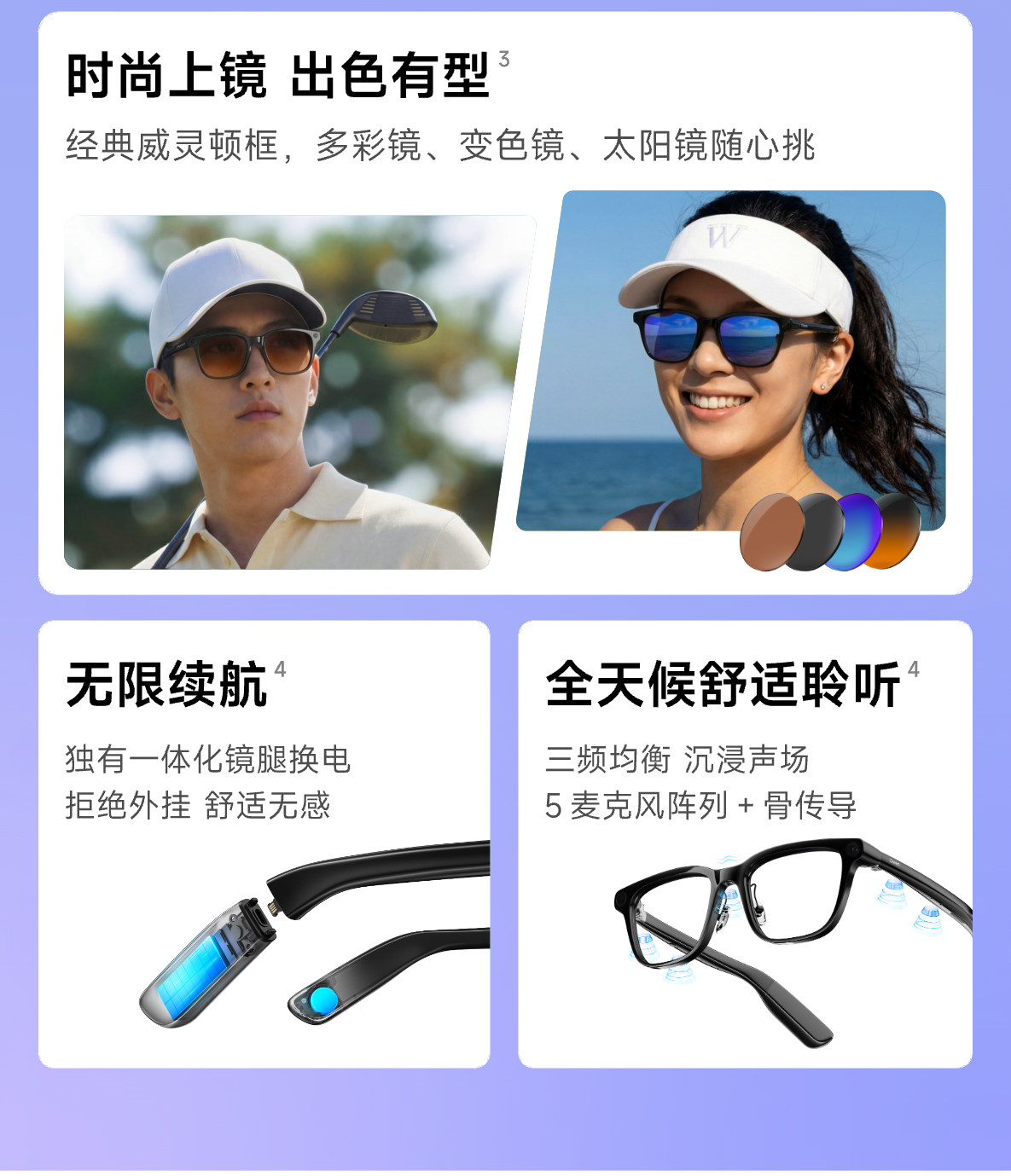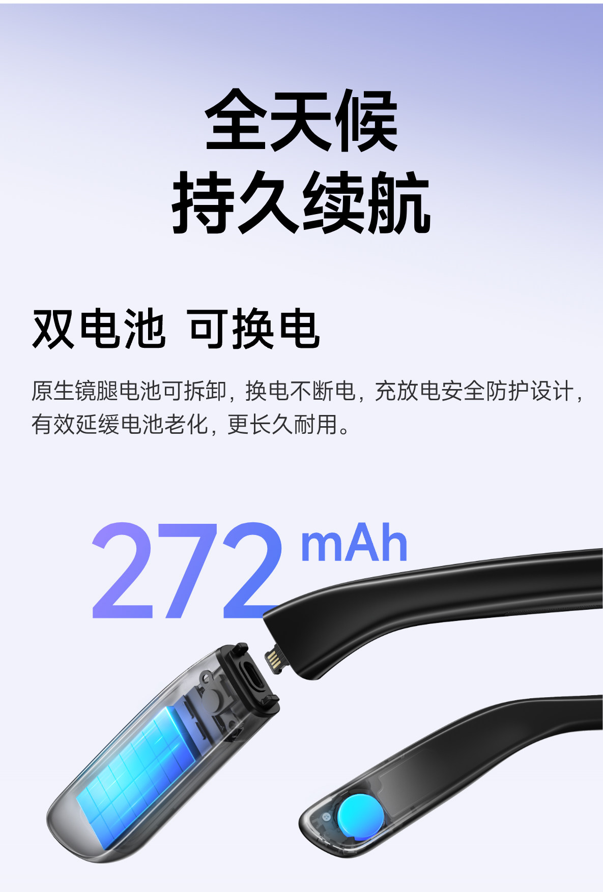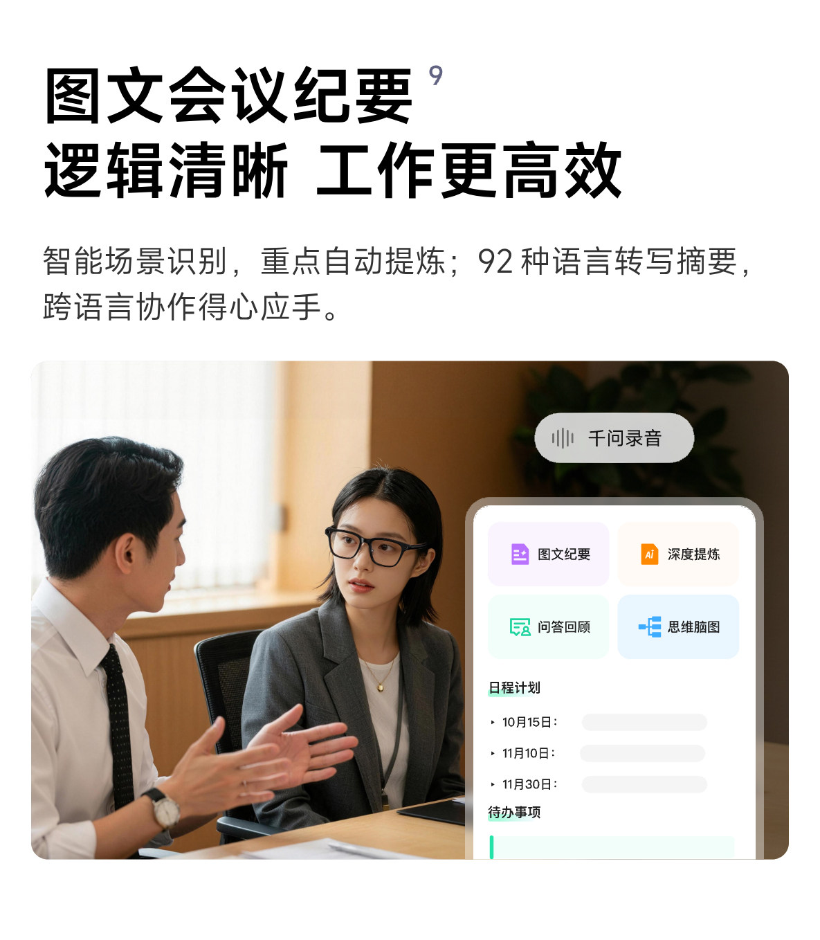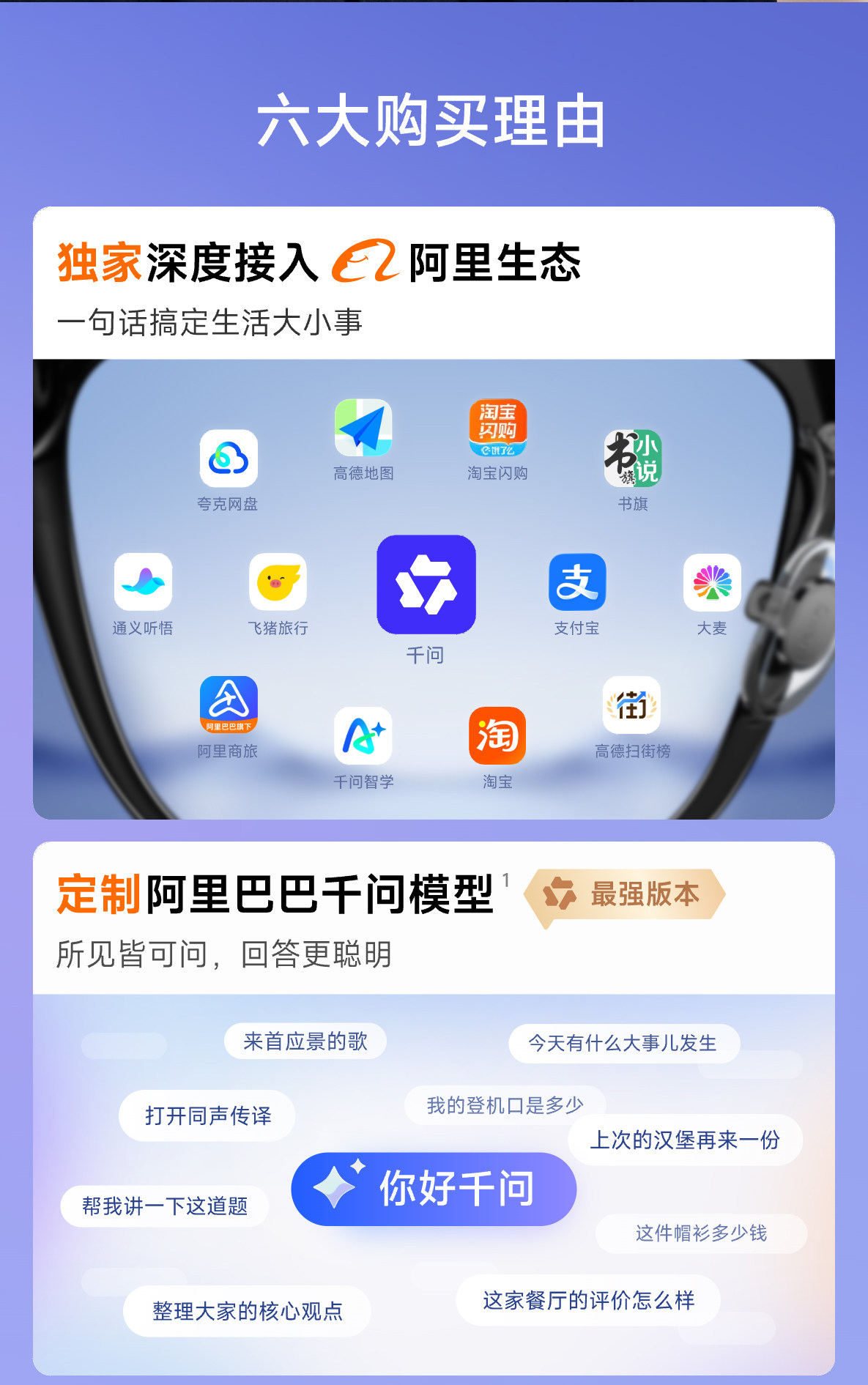 夸克 AI智能眼镜 G1 黑色威灵顿框镜架2+64GB 智能眼镜实时翻译千问AI对话助手运动相机拍照高清拍摄眼镜可换电池