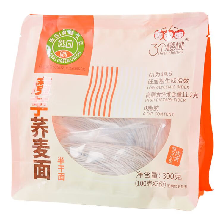 3个樱桃魔芋荞麦面300g/袋