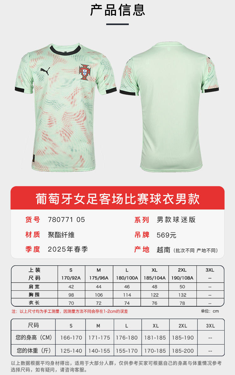 小李子PUMA彪马葡萄牙主场球迷版短袖球衣成人男款779190 01