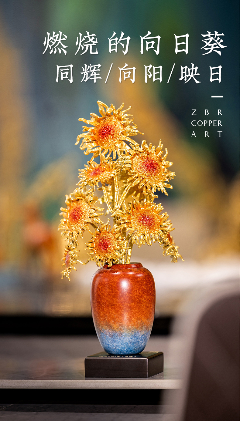 朱炳仁铜 燃烧的向日葵 同辉 摆件客厅玄关高级感轻奢家居