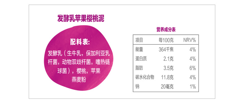 小皮发酵乳苹果樱桃泥100g