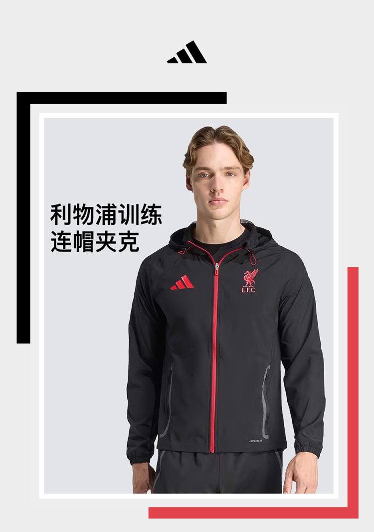 小李子ADIDAS阿迪达斯利物浦足球运动训练连帽夹克成人男JZ5556