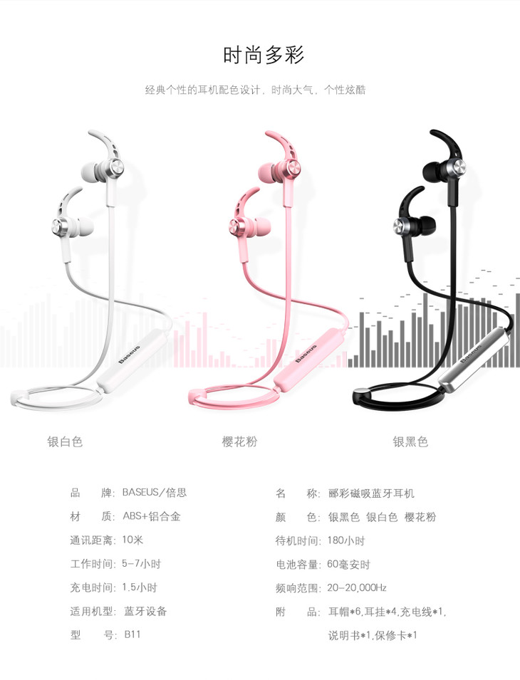 倍思B11郦彩磁吸蓝牙耳机无线运动跑步