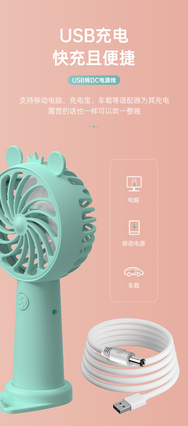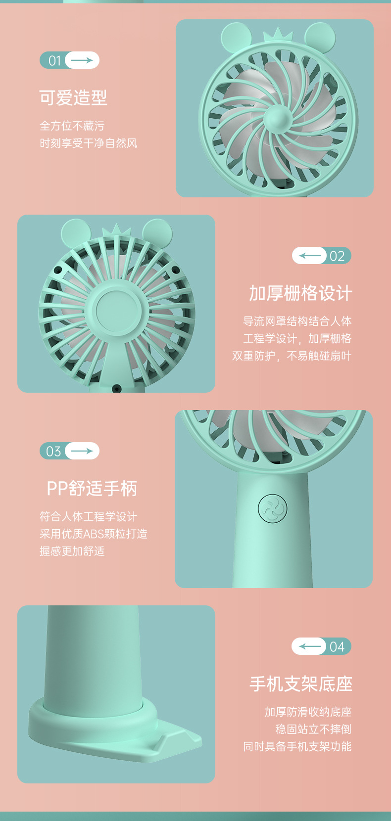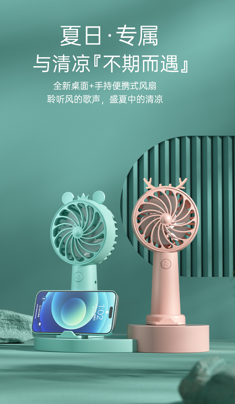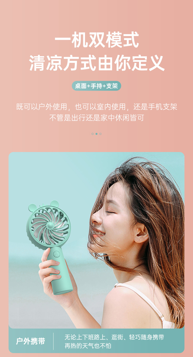 2023新款夏季手持风扇户外便捷式迷你小风扇USB充电带支架小型卡