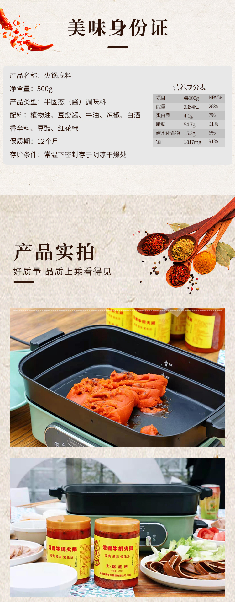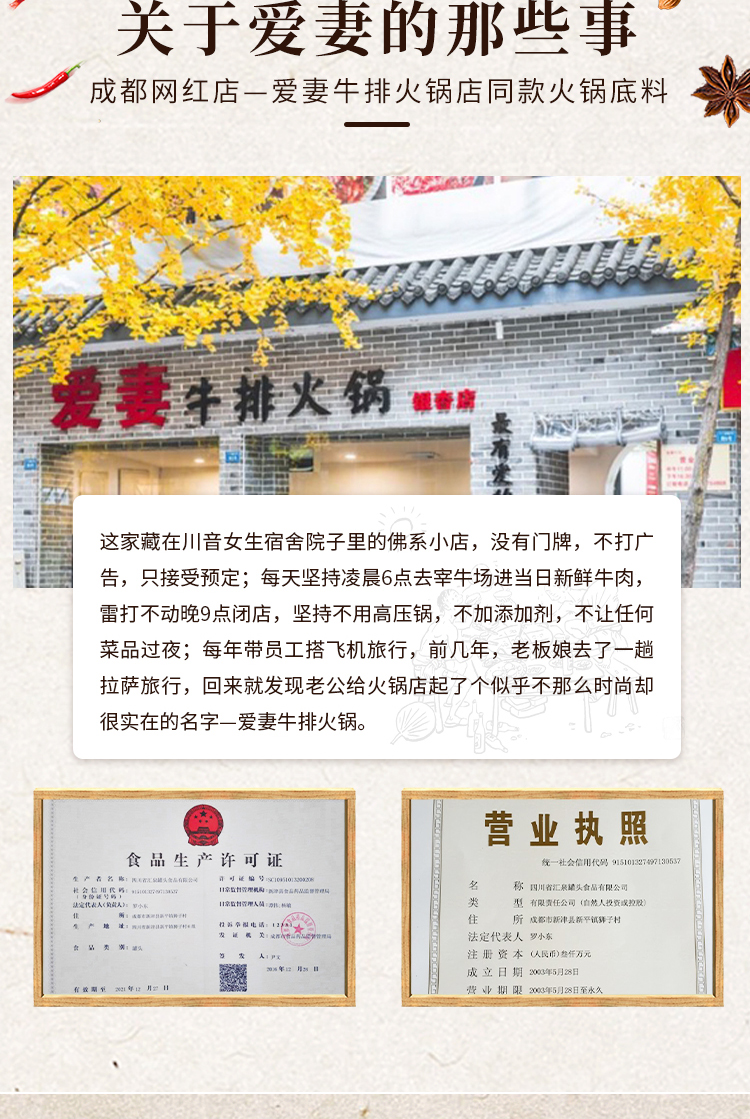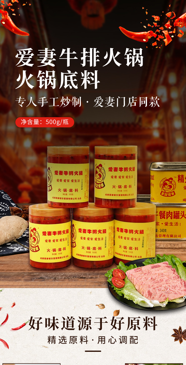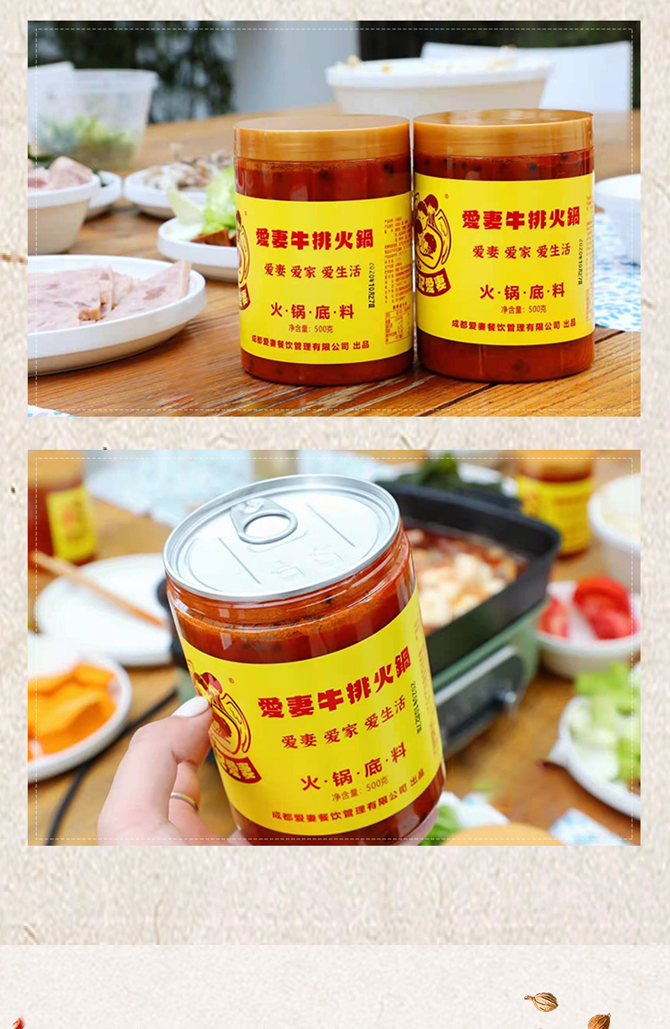 现货|爱妻牛排牛油火锅底料500g*2罐 麻辣鲜香 正宗成都火锅底料[福利品]
