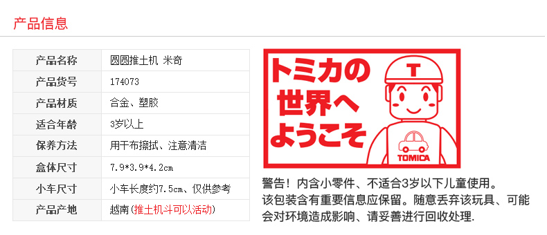 多美卡 174073 圆圆推土机 米奇