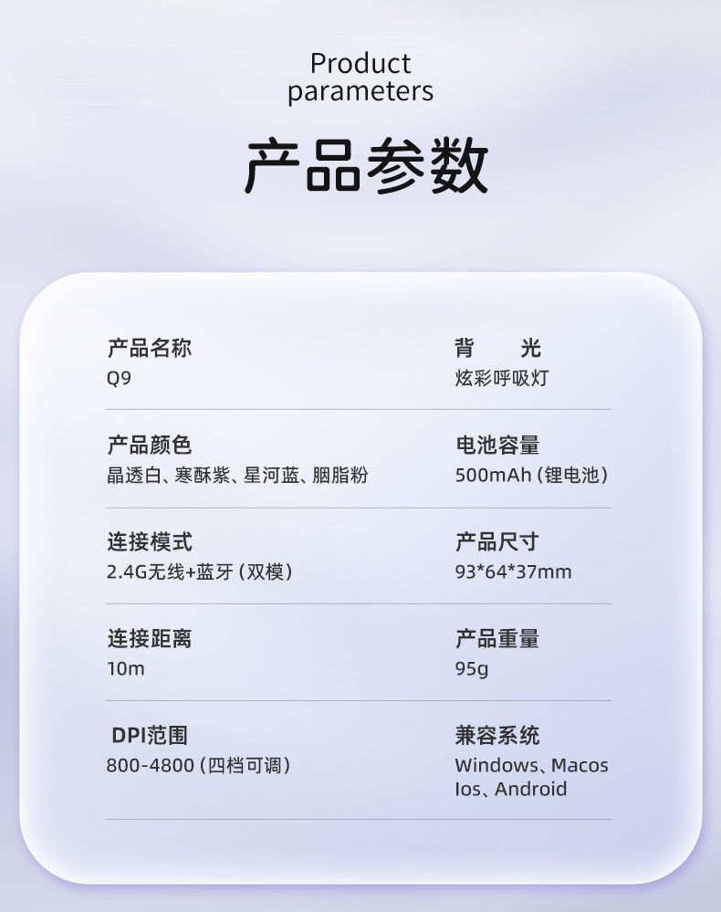 【前行者Q9无线蓝牙双模鼠标】 静音女生可爱小鼠标 高颜值办公电竞游戏土豆鼠标