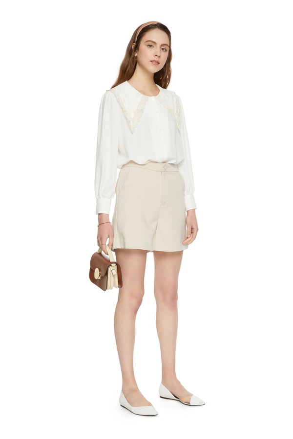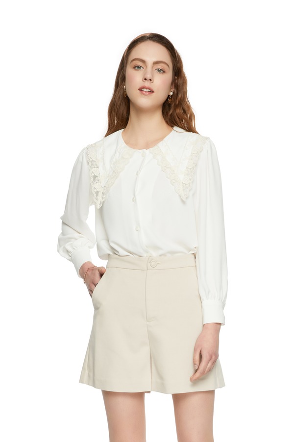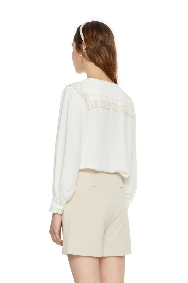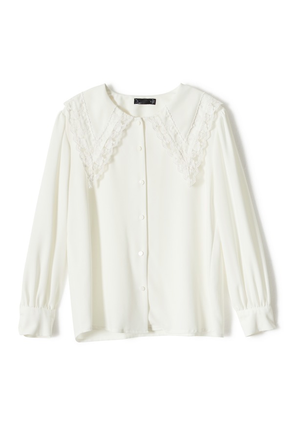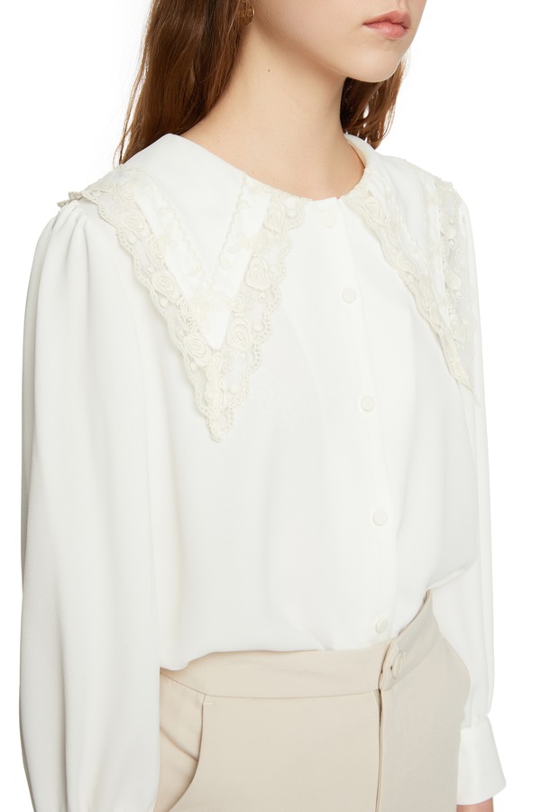 NOIR 夸张花朵翻领白色上衣 6298