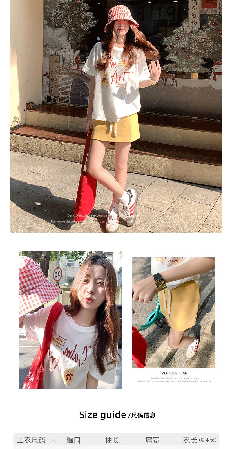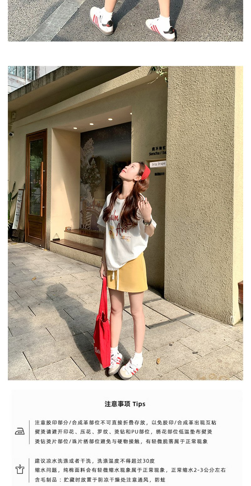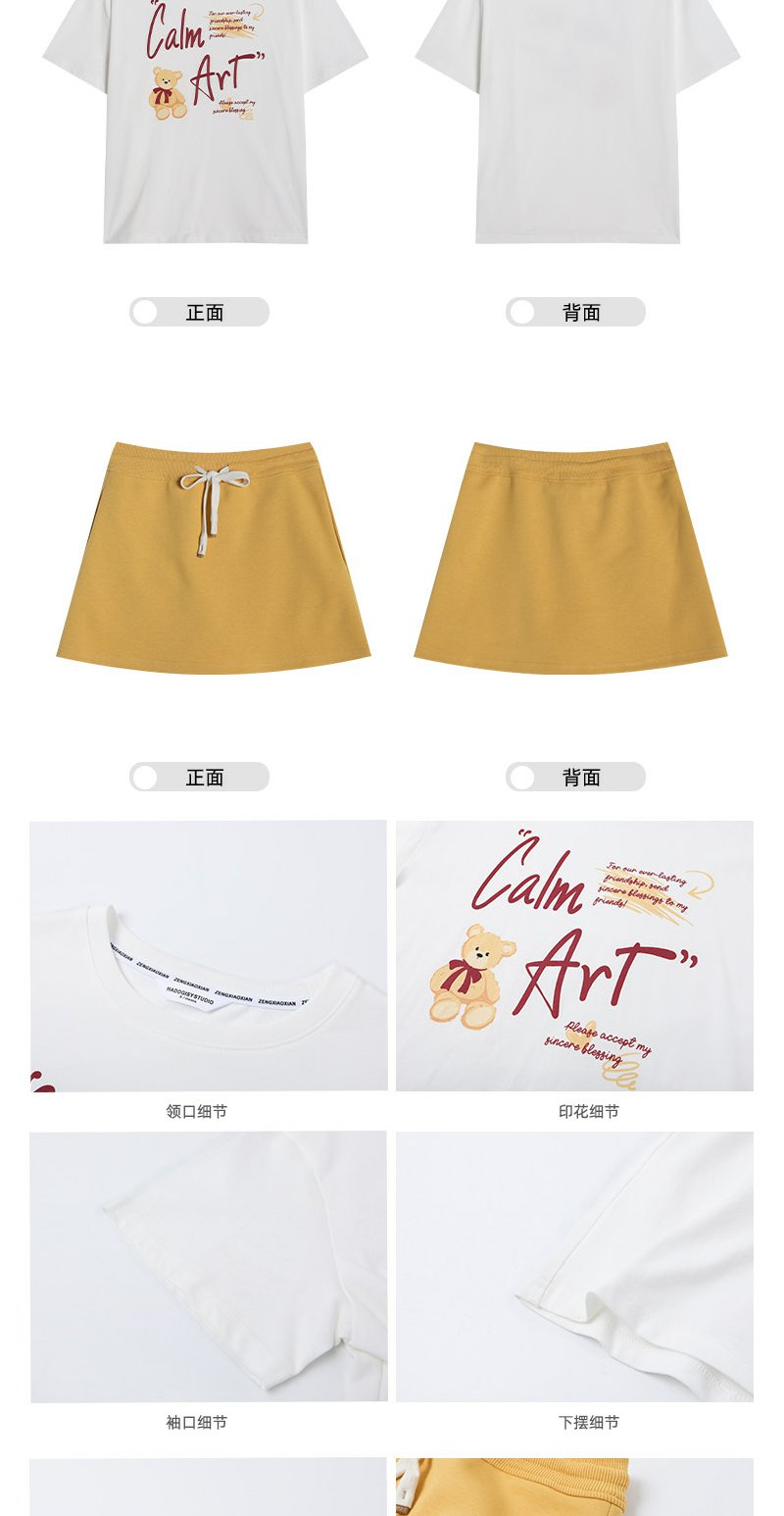 <曾小咸推荐>白色印花短袖t恤黄色半身裙