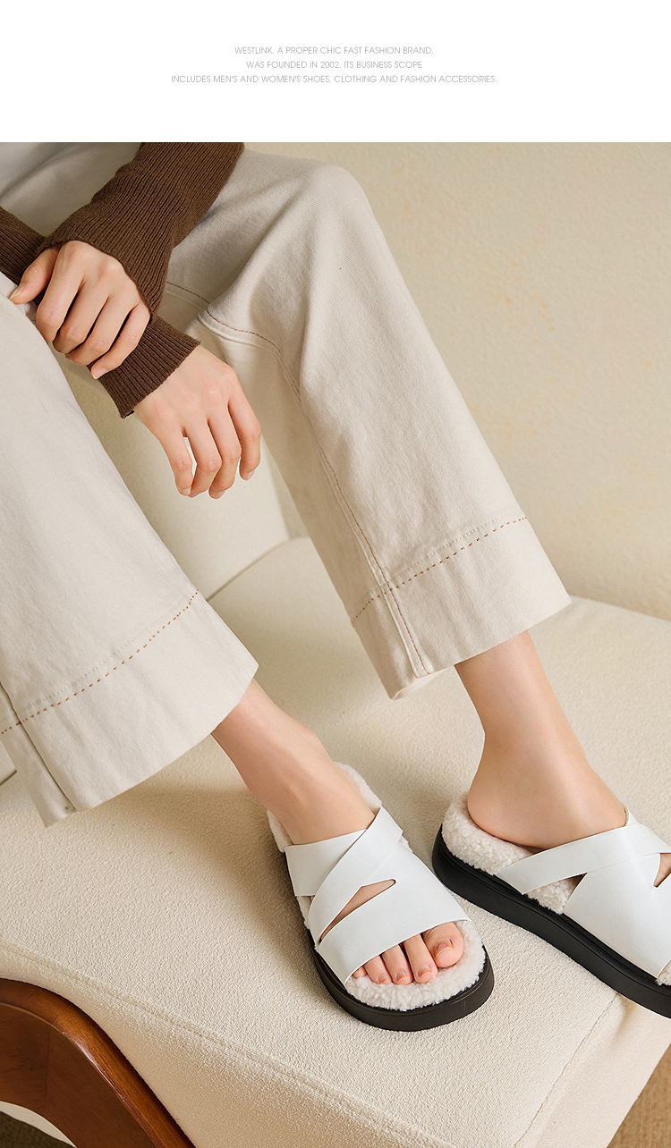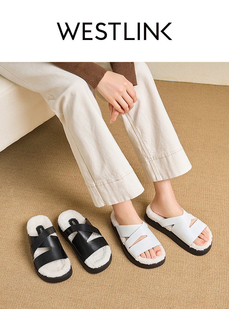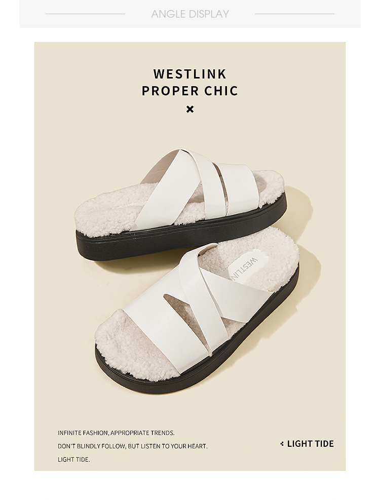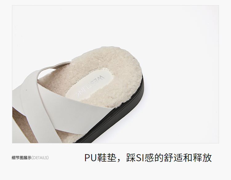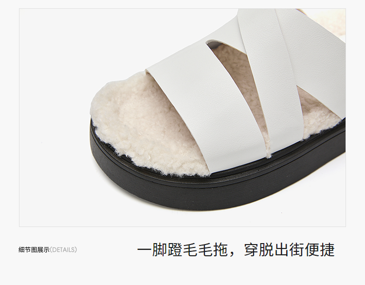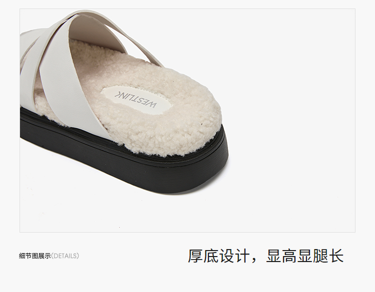 西遇一脚蹬毛毛鞋女新款秋冬法式百搭保暖棉拖厚底外穿拖鞋V1857062