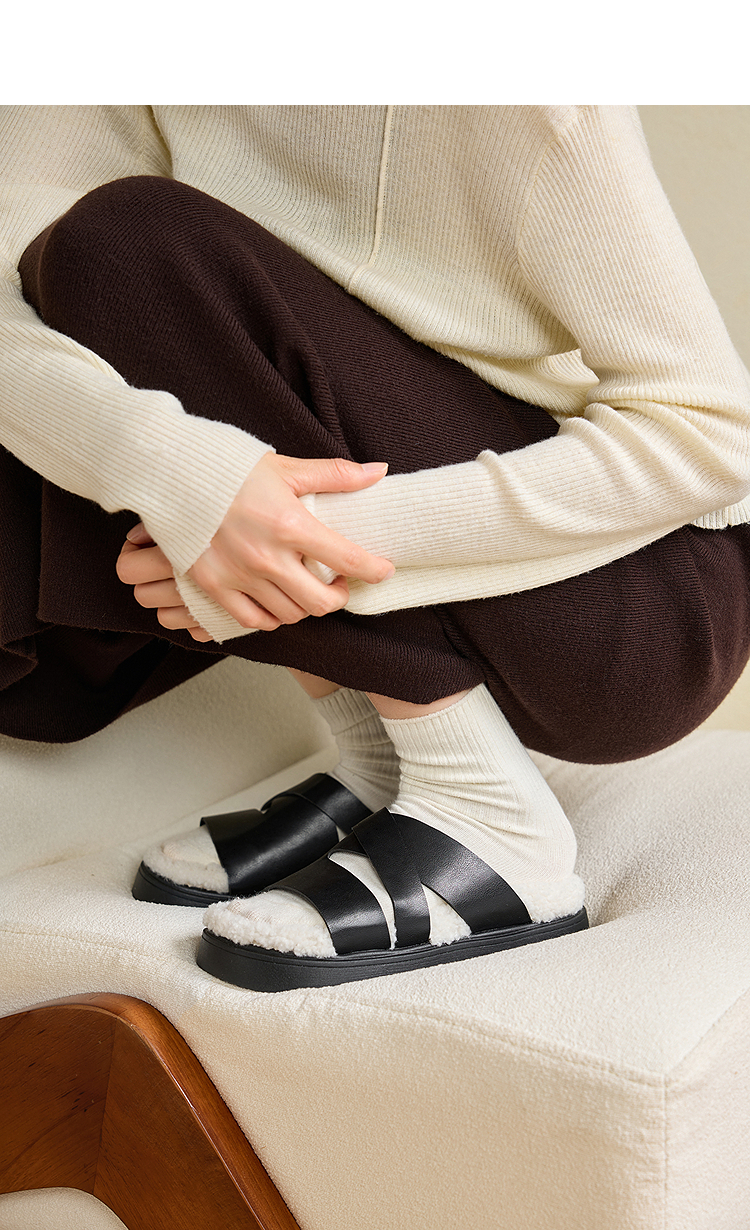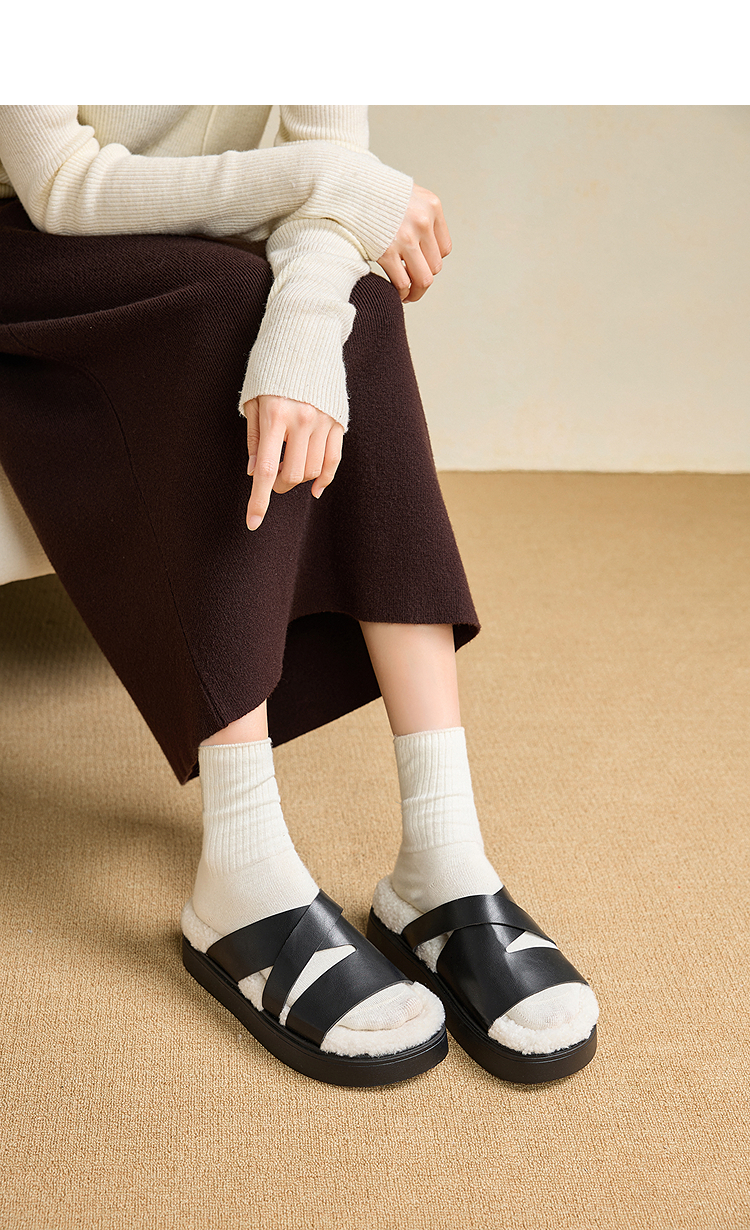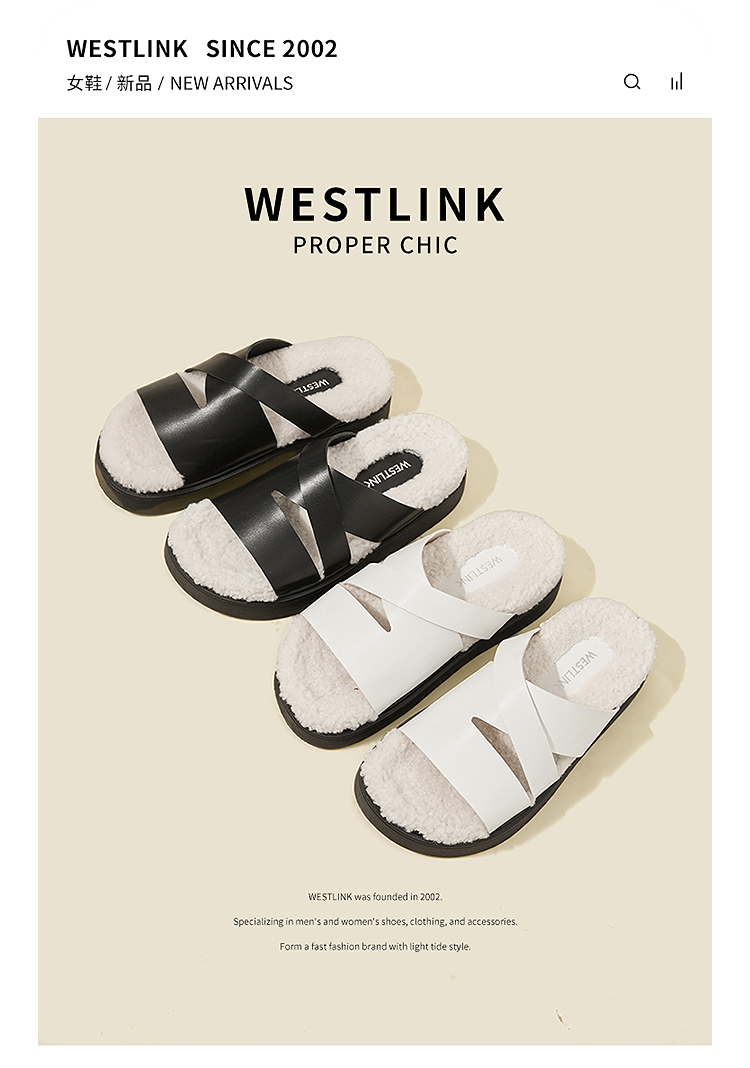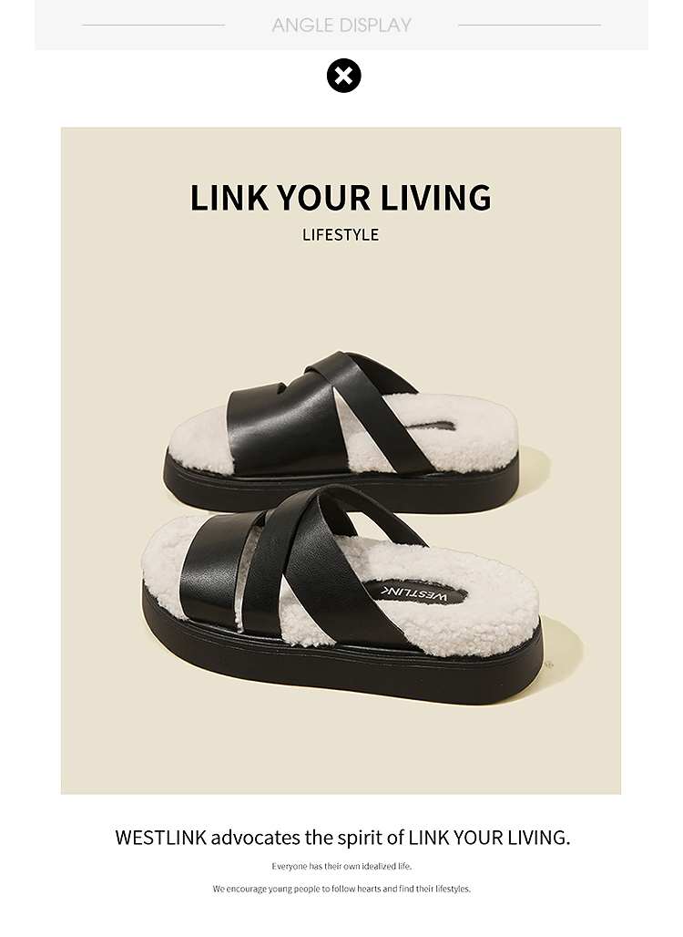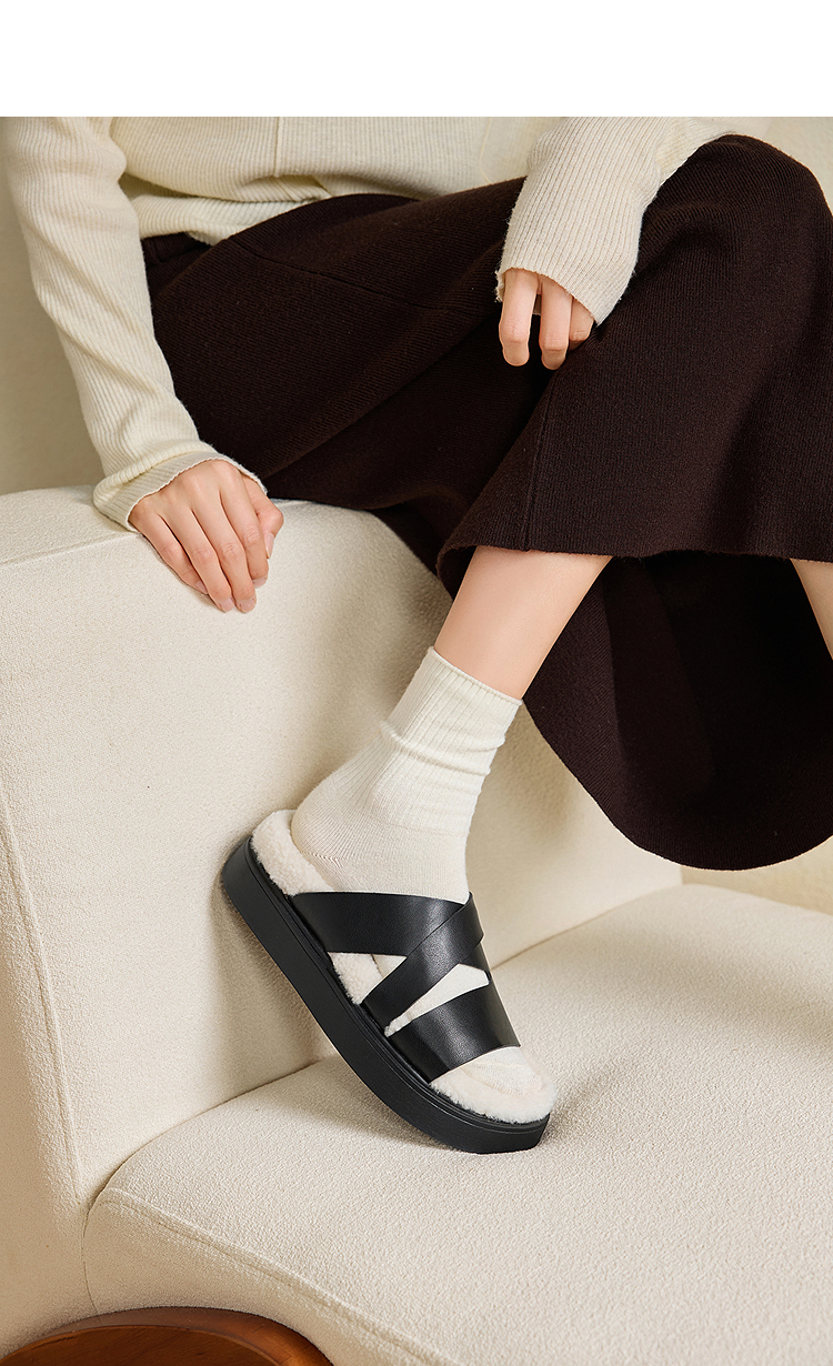 西遇一脚蹬毛毛鞋女新款秋冬法式百搭保暖棉拖厚底外穿拖鞋V1857062