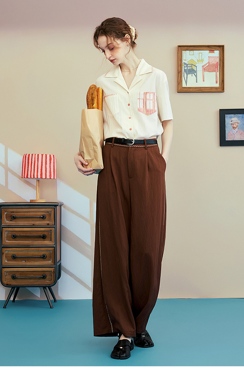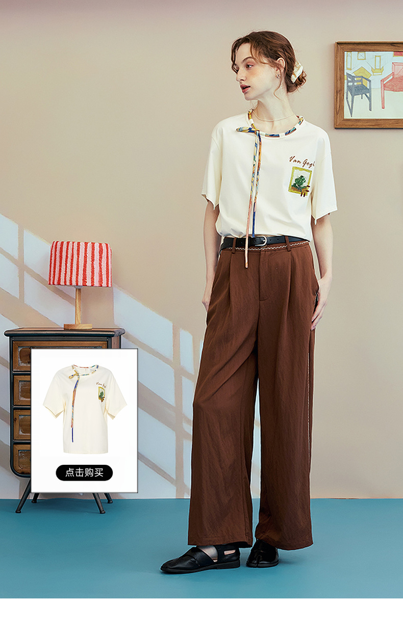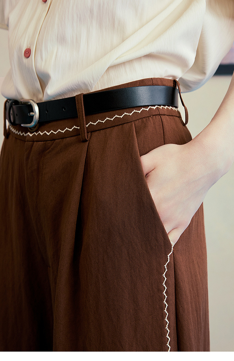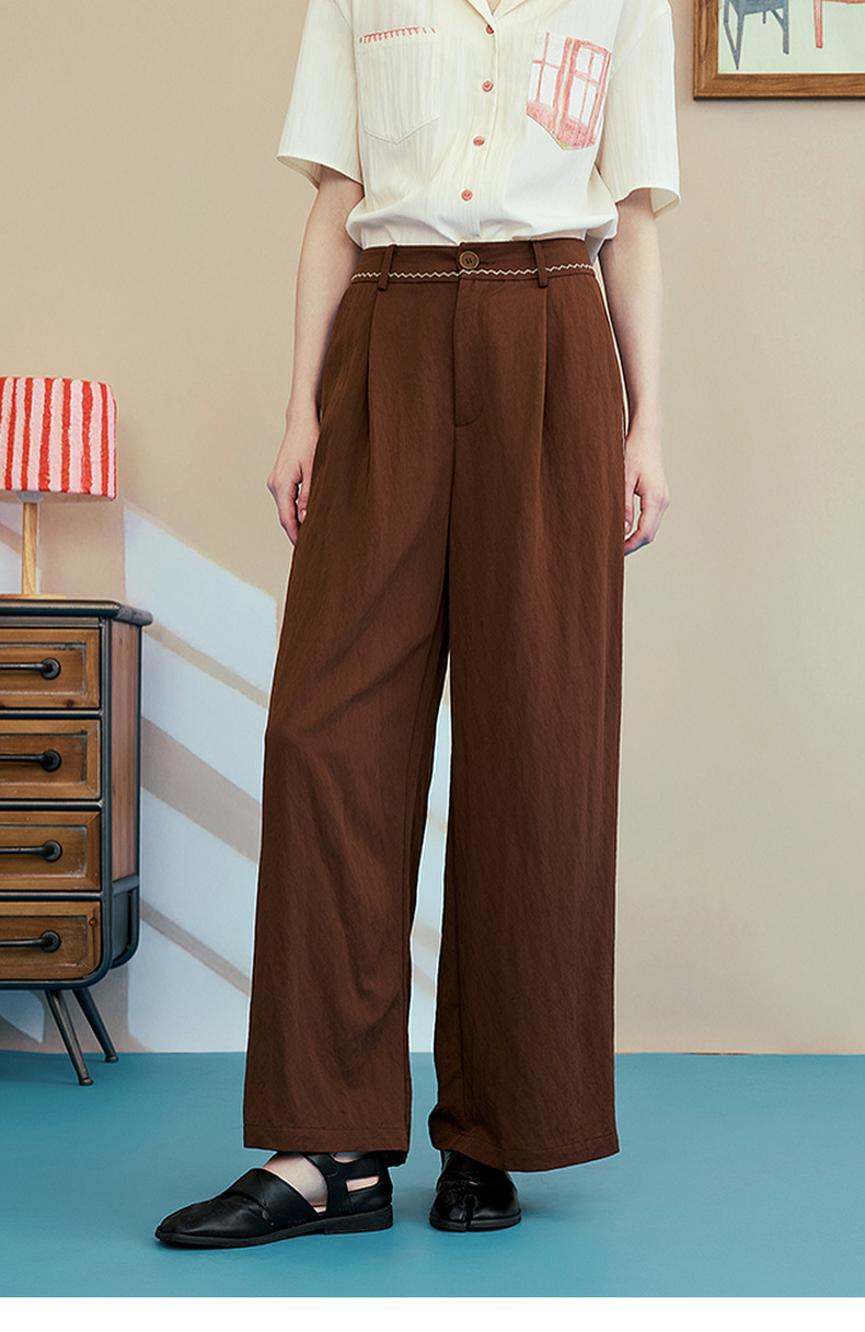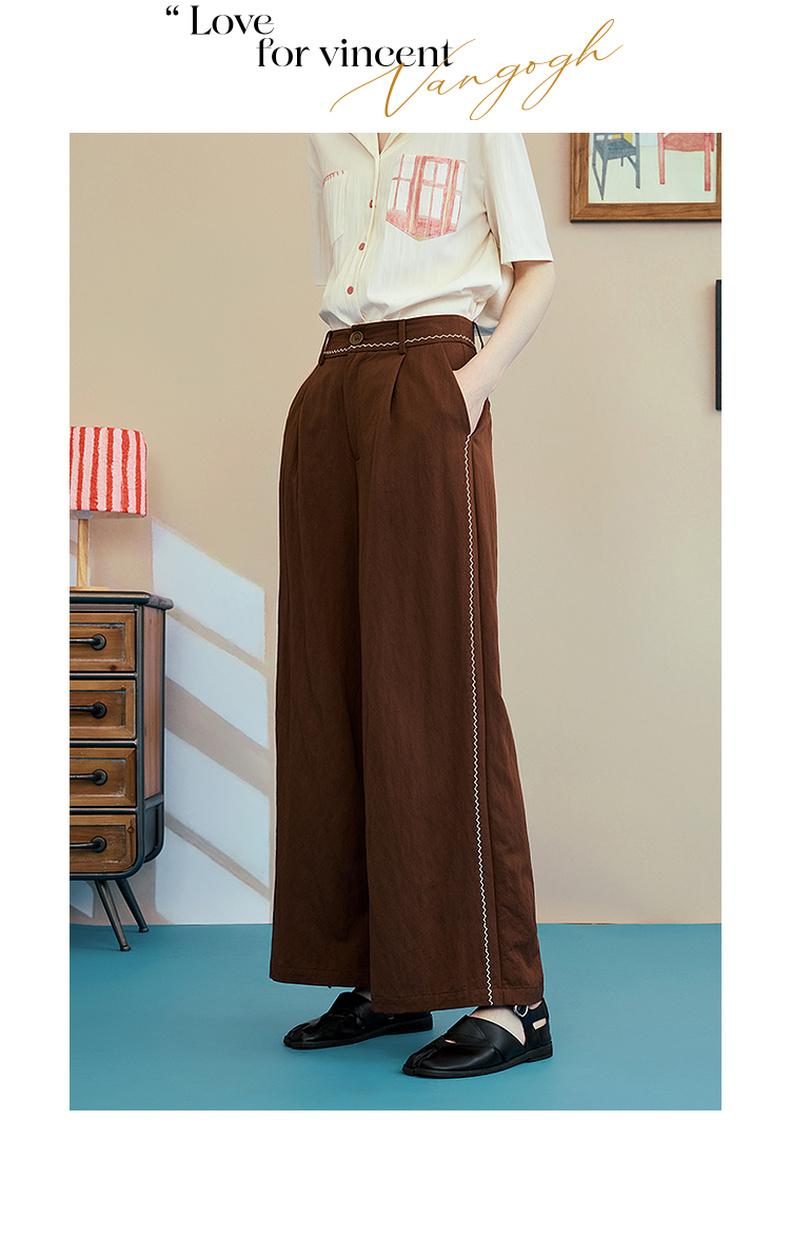 两三事梵高文艺 飓影利刃 2025夏季新款复古绣边装饰直筒休闲裤女