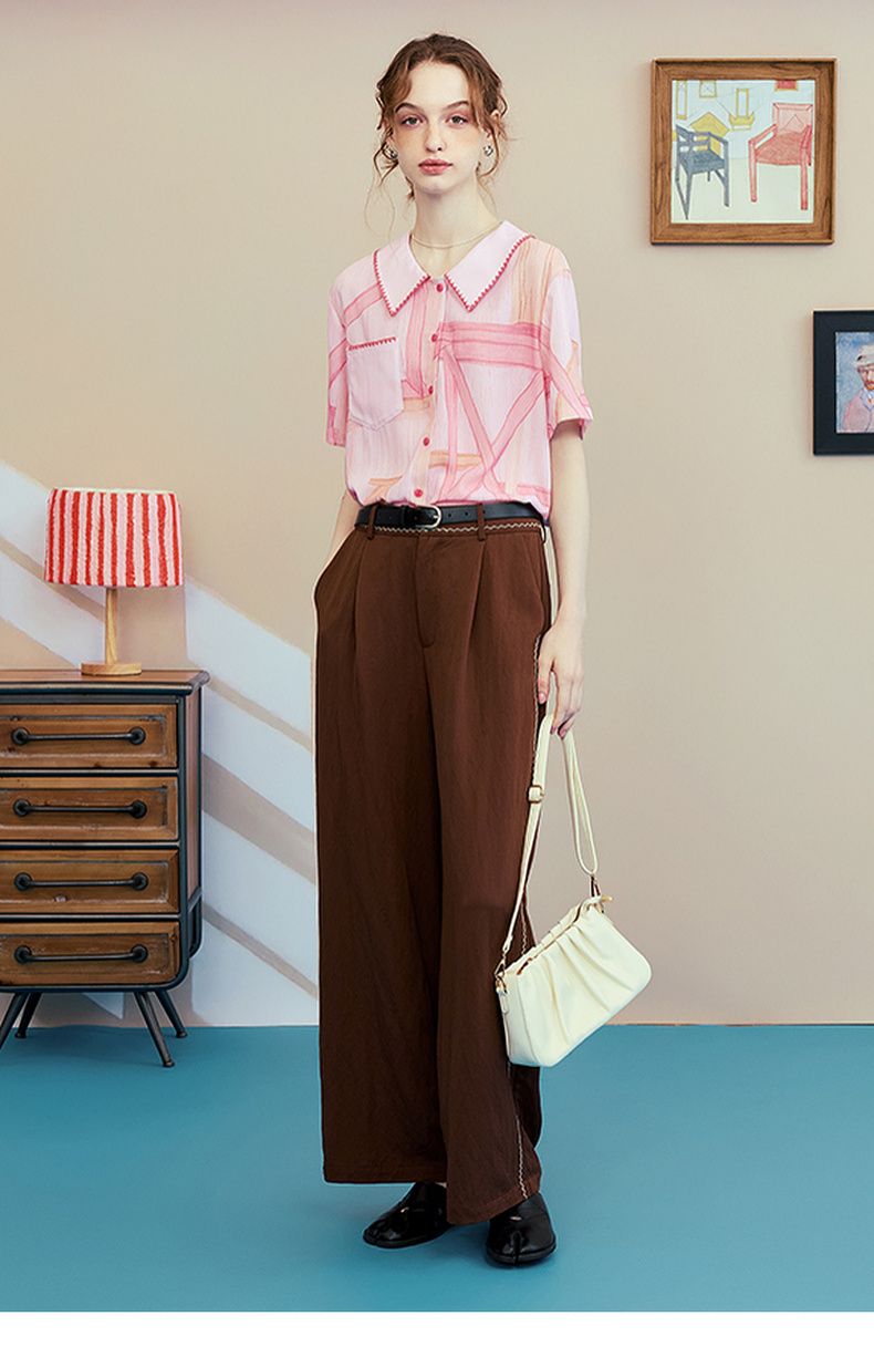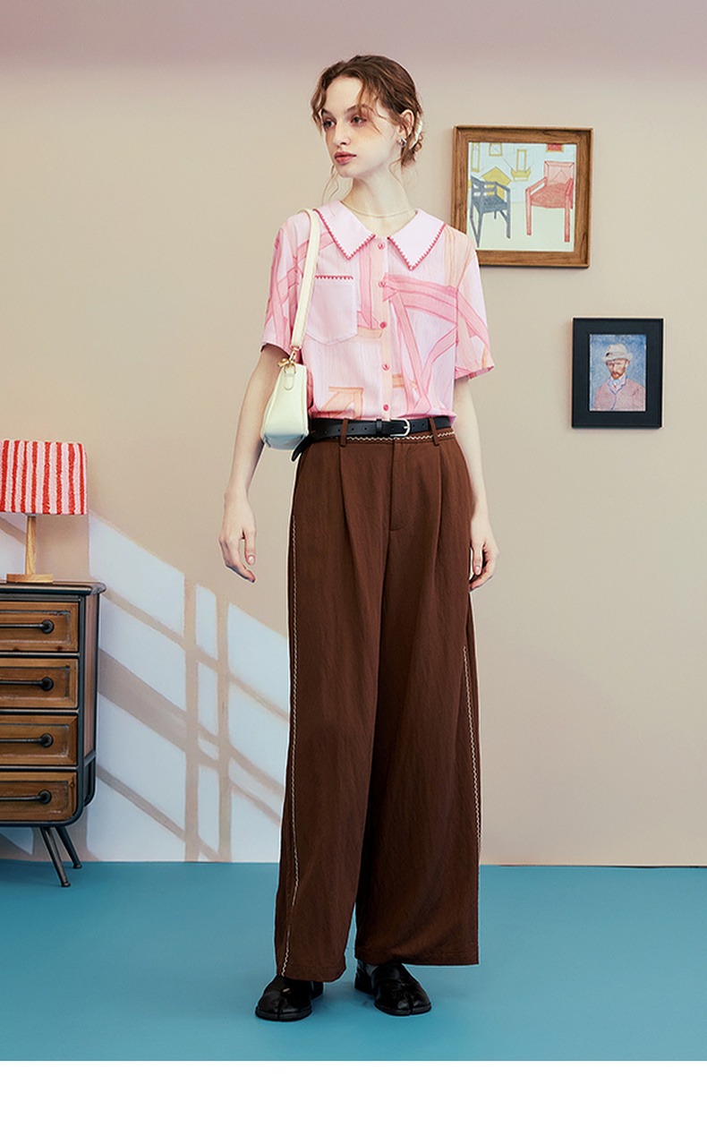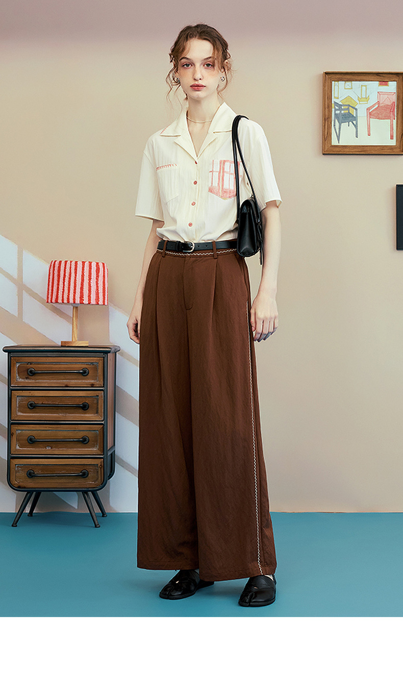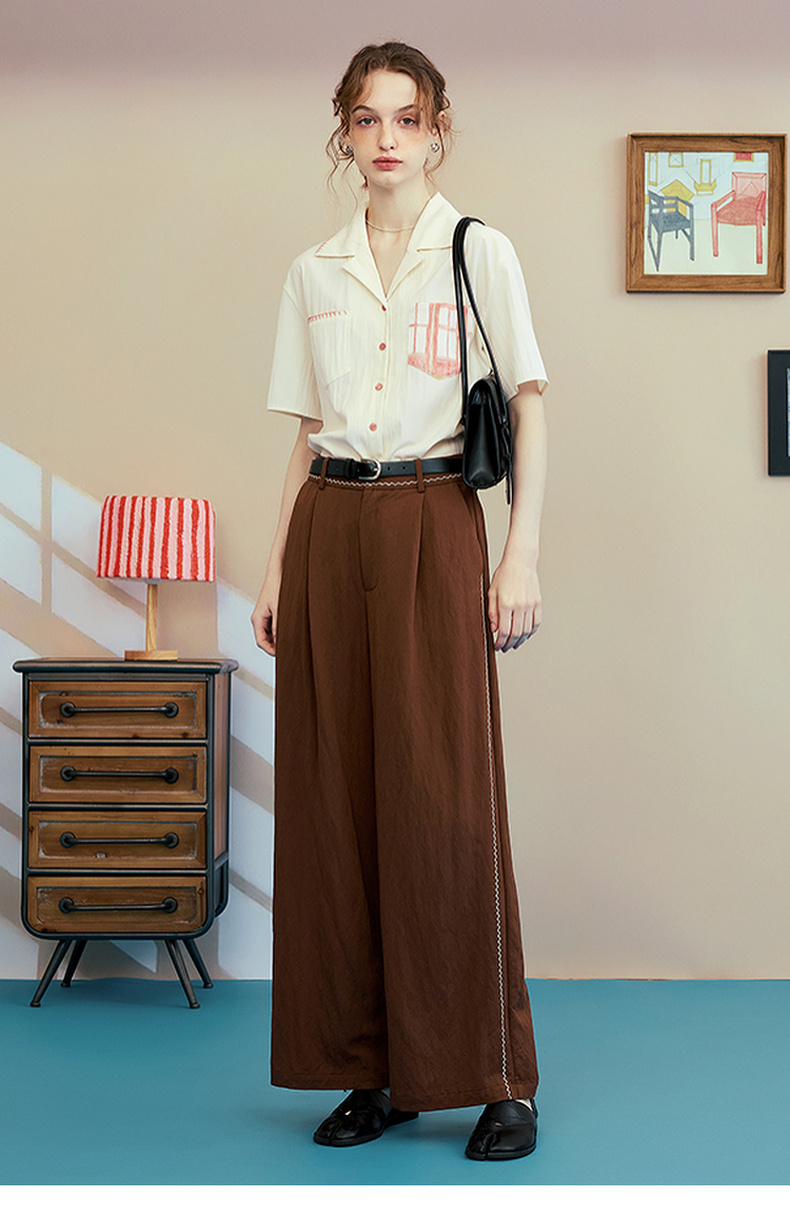 两三事梵高文艺 飓影利刃 2025夏季新款复古绣边装饰直筒休闲裤女