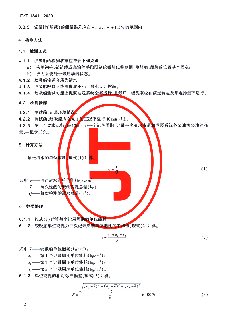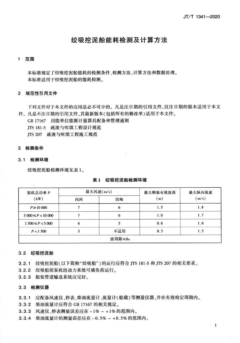 | 绞吸挖泥船能耗检测及计算方法(JT/T 1341—2020) | ||