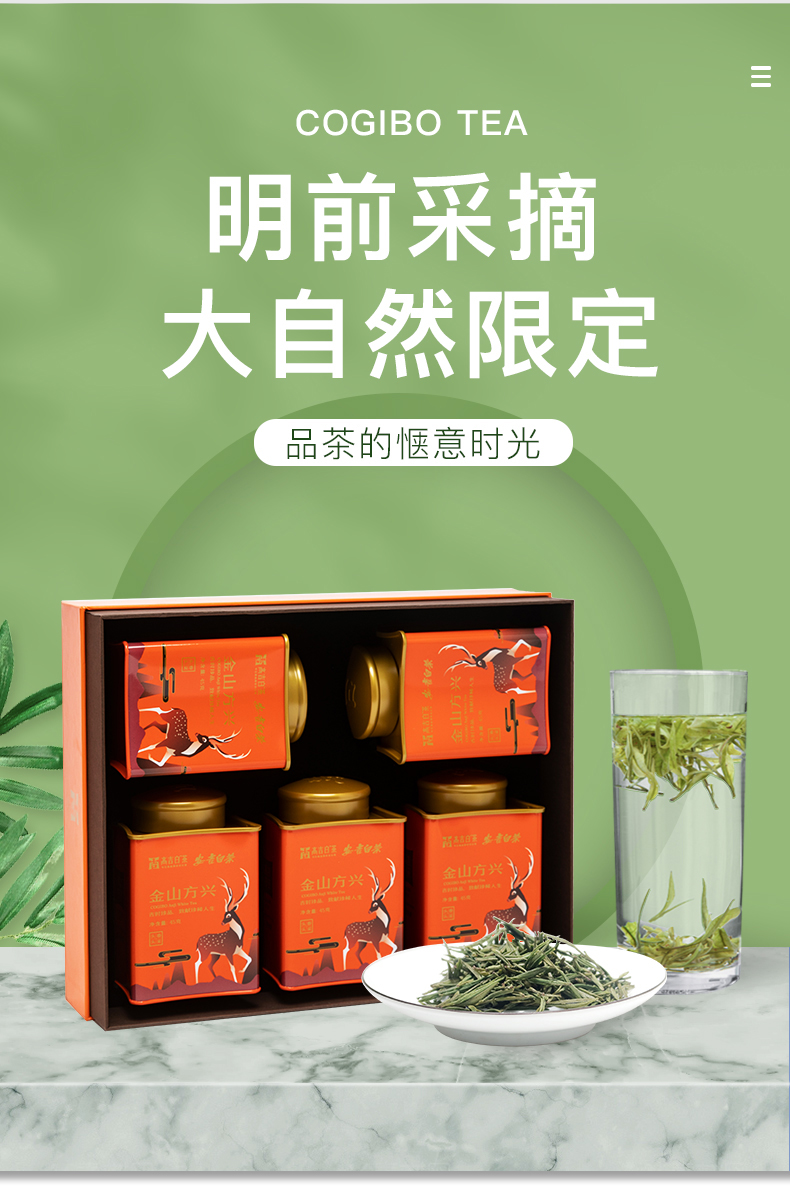 【2023年新茶】高吉白 特级安吉白茶 明前精品绿茶 金山方兴礼盒 225g/盒(天猫同款)