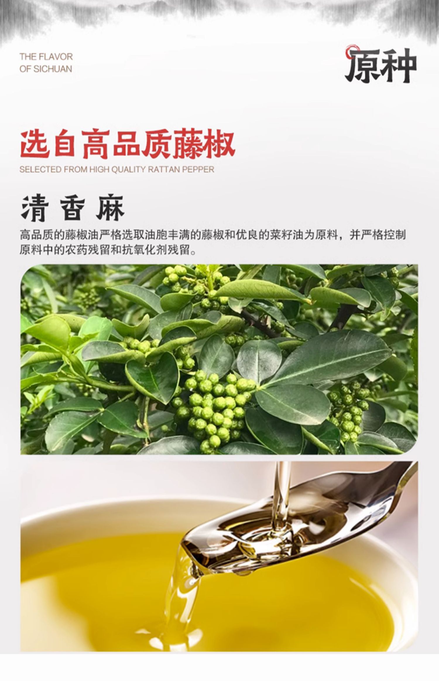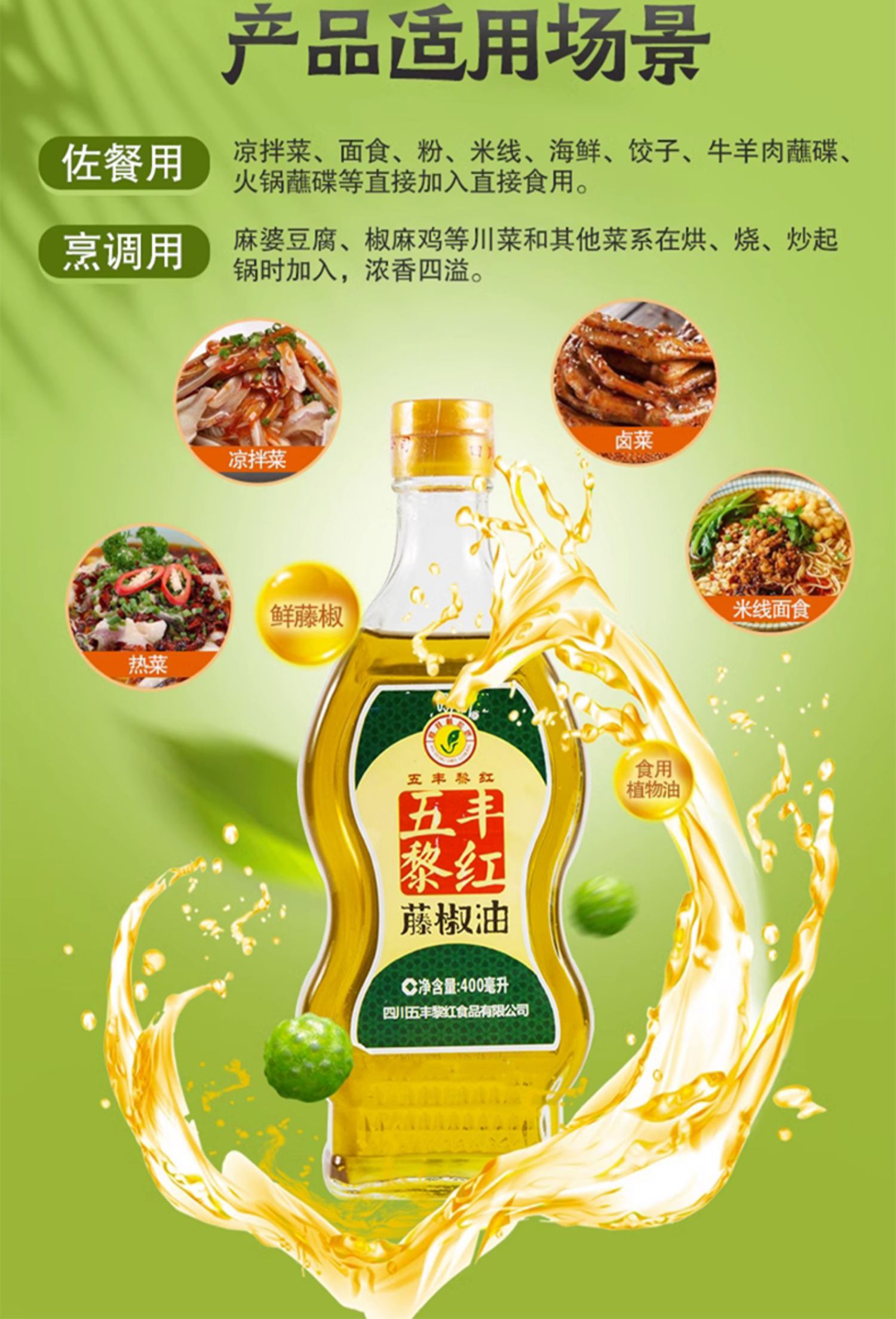 五丰黎红藤椒油400ml四川汉源麻椒油家用麻油米线凉拌火锅食用油LY