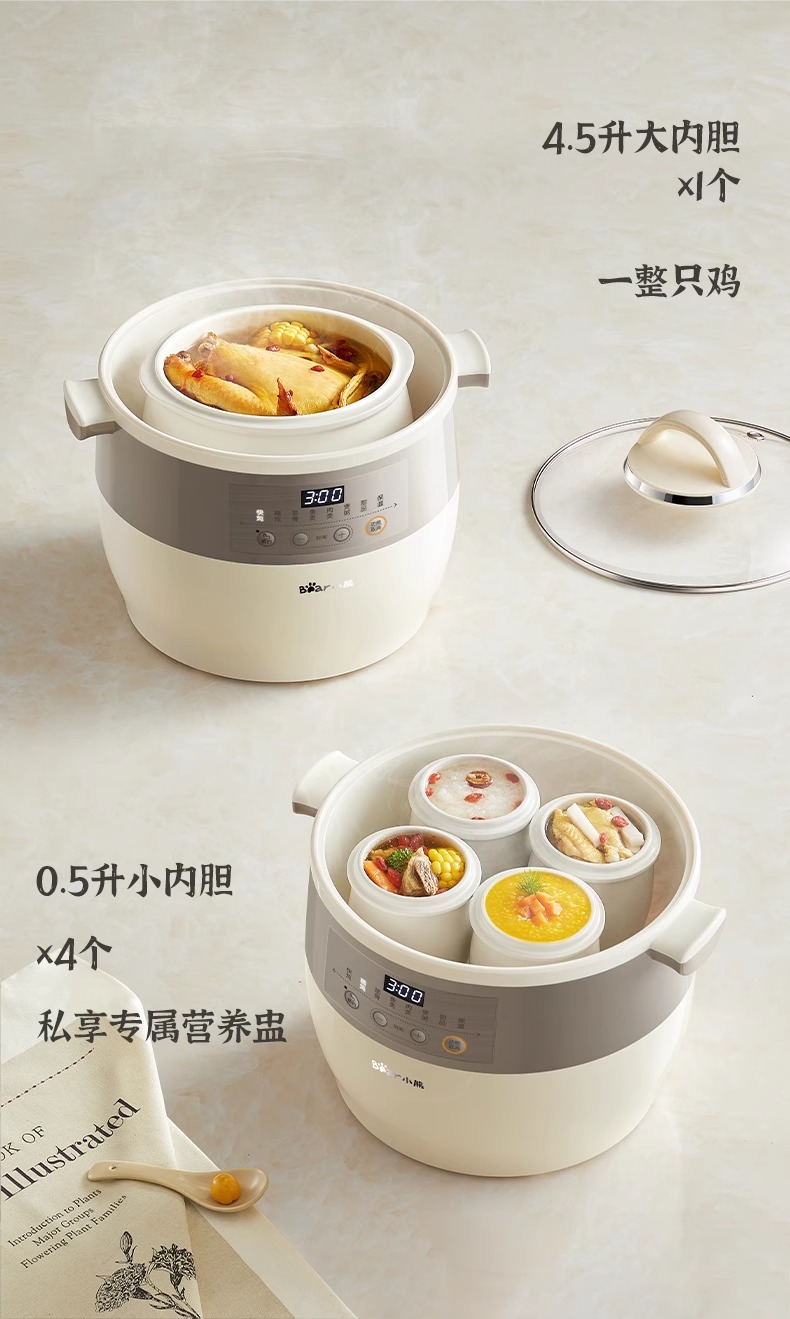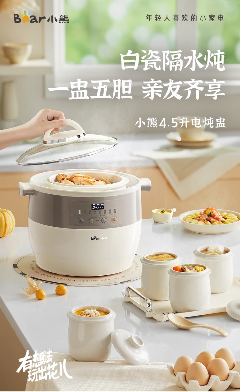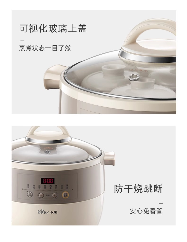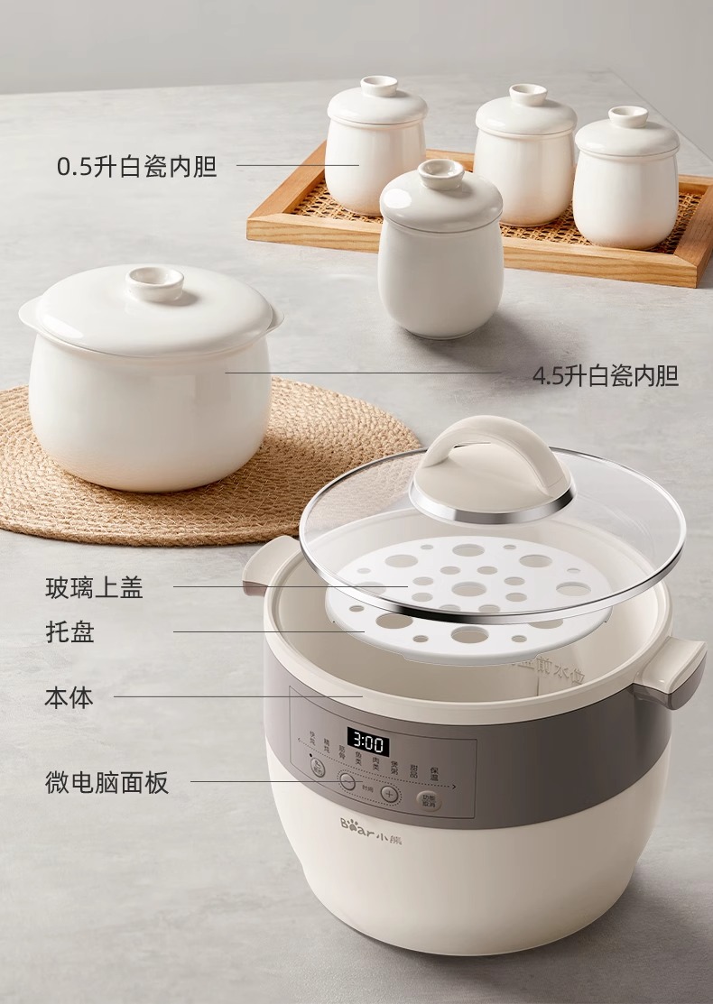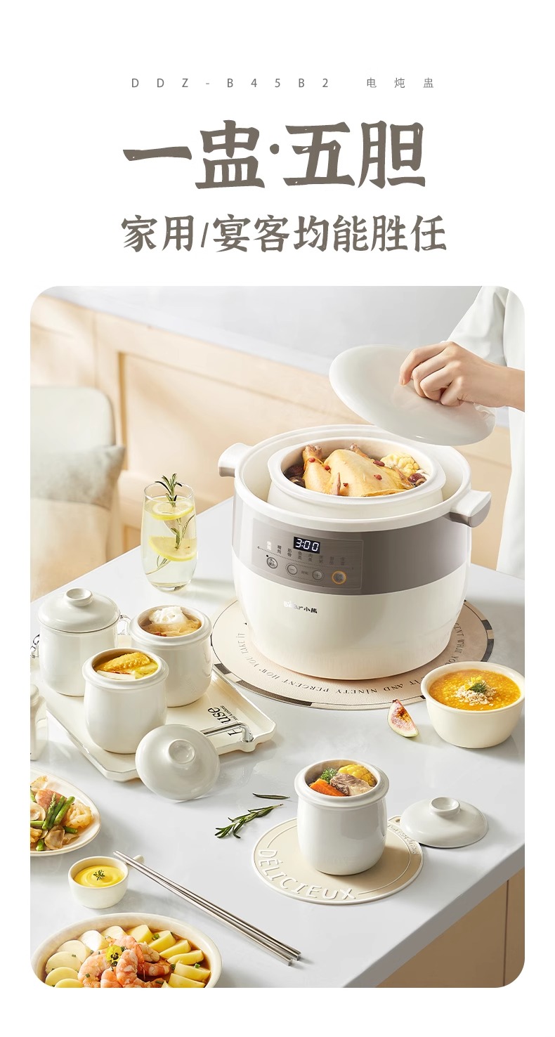 小熊电炖锅炖盅隔水炖家用全自动炖汤煲汤锅大容量陶瓷煮粥烹饪机