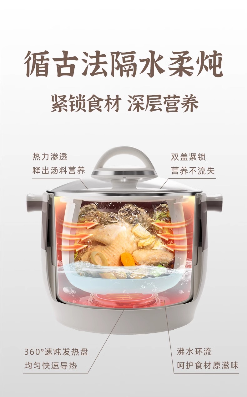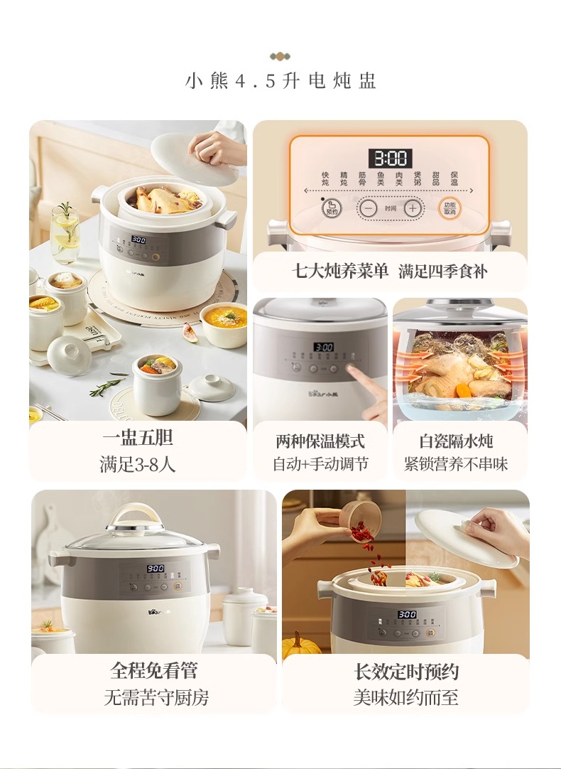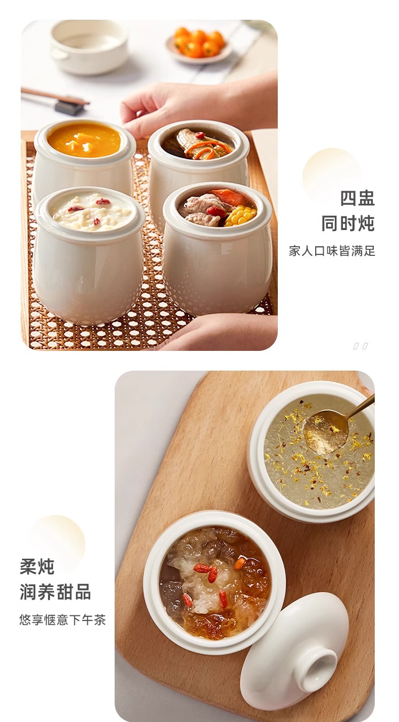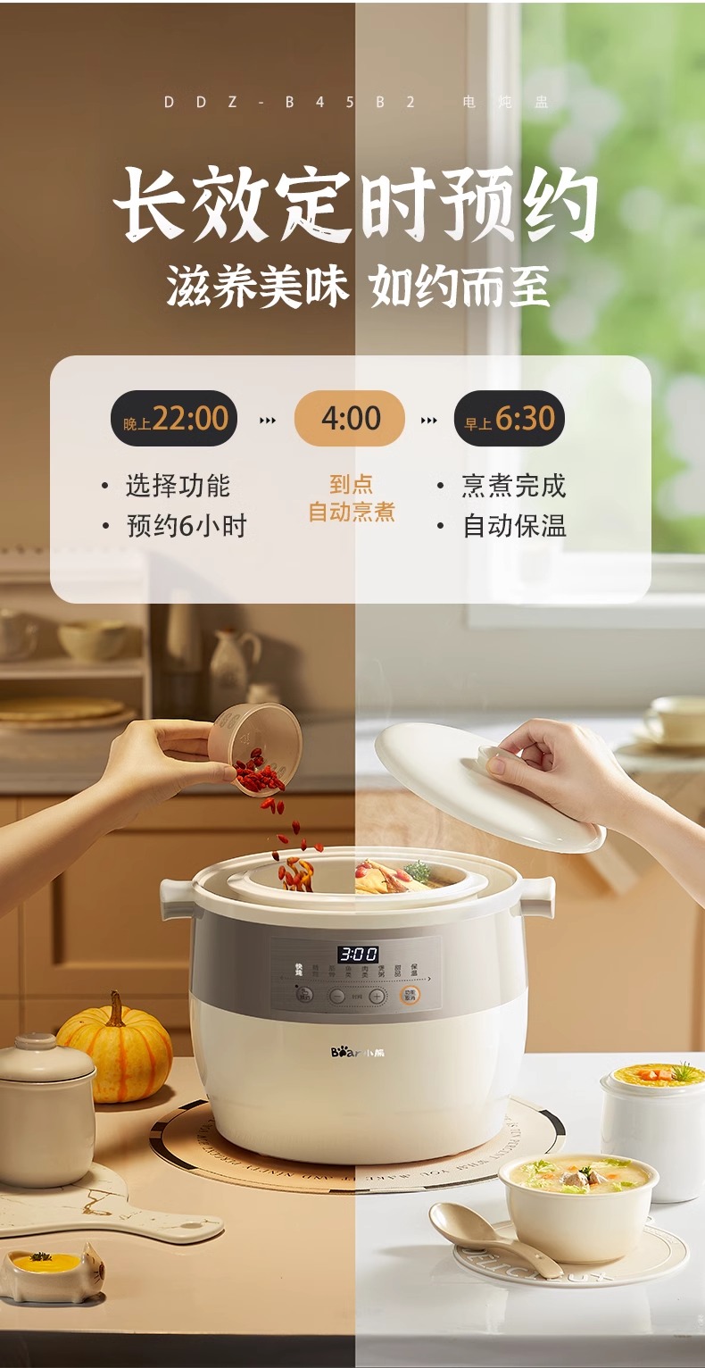小熊电炖锅炖盅隔水炖家用全自动炖汤煲汤锅大容量陶瓷煮粥烹饪机