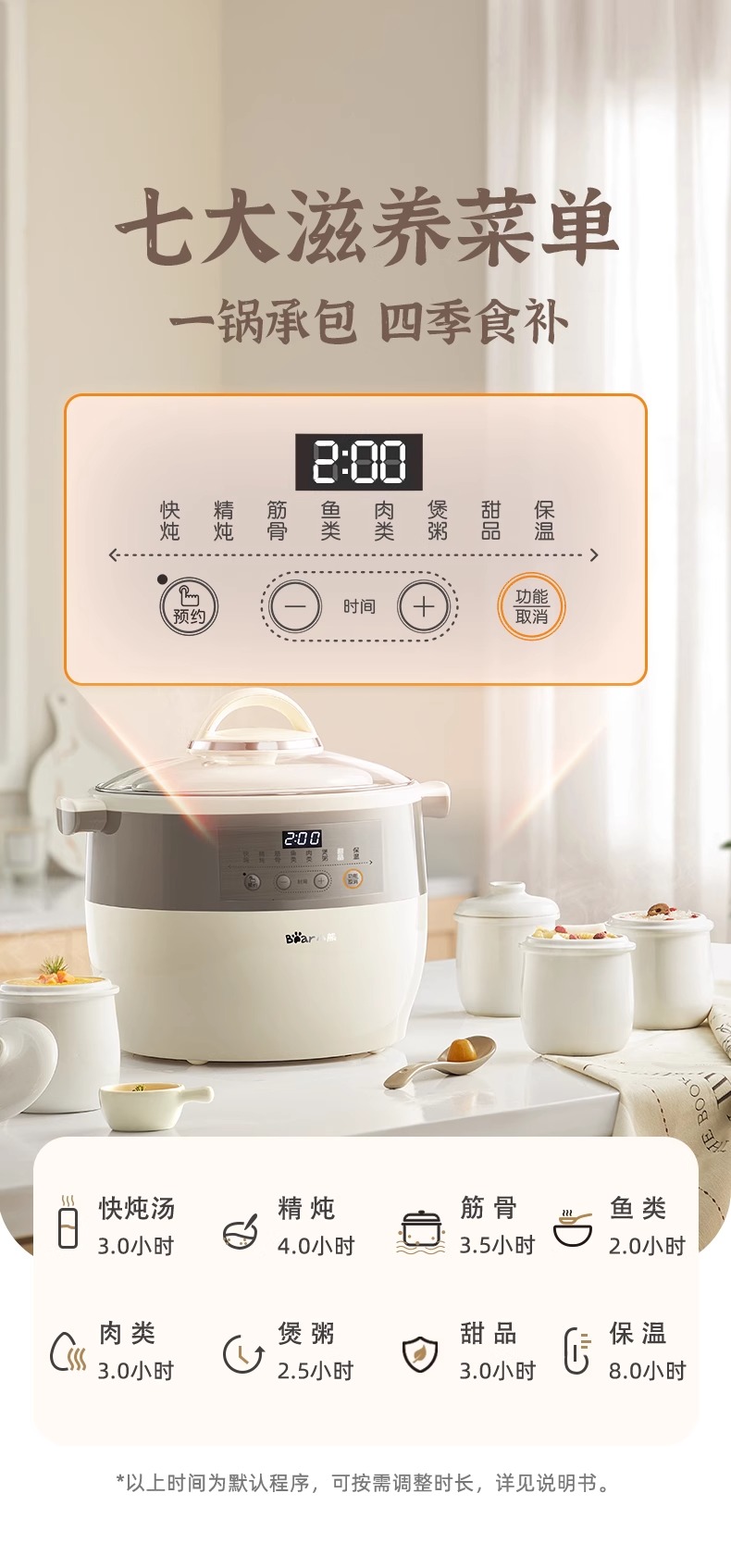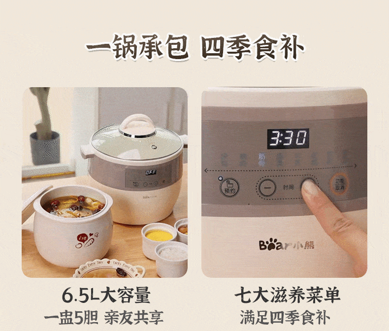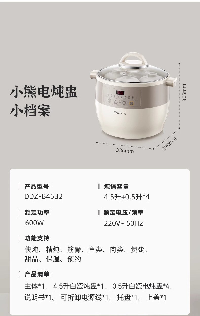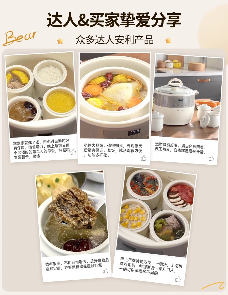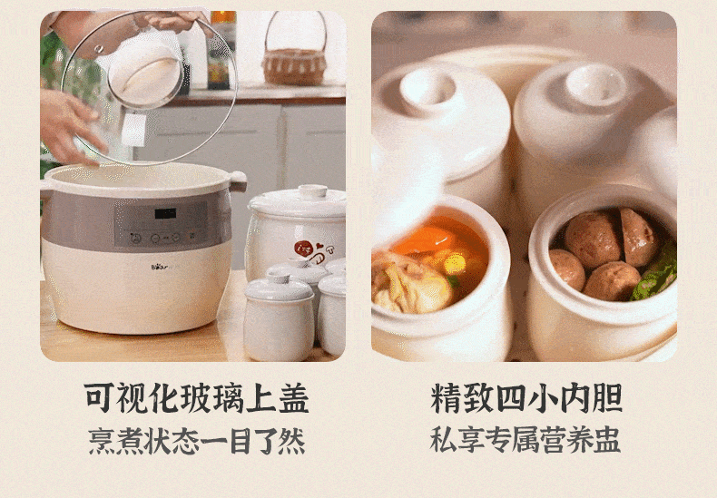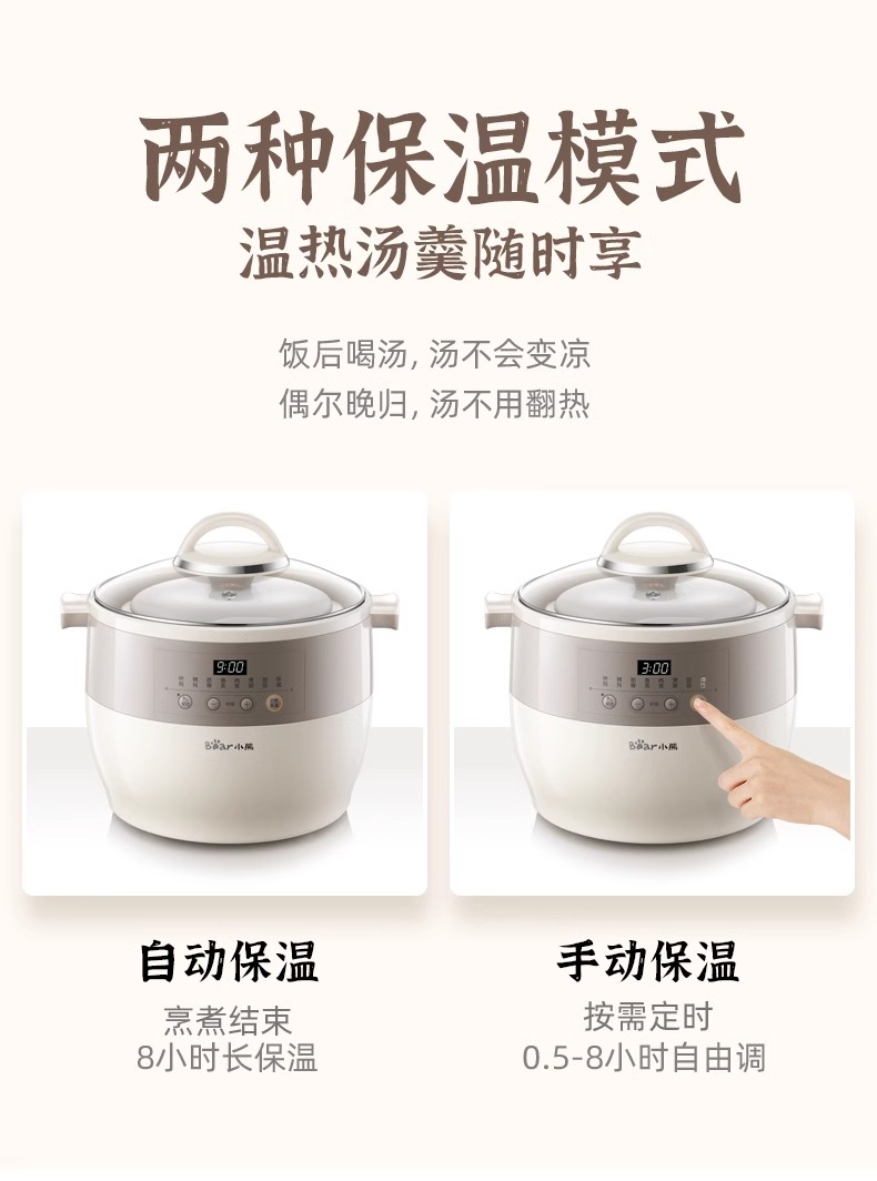 小熊电炖锅炖盅隔水炖家用全自动炖汤煲汤锅大容量陶瓷煮粥烹饪机