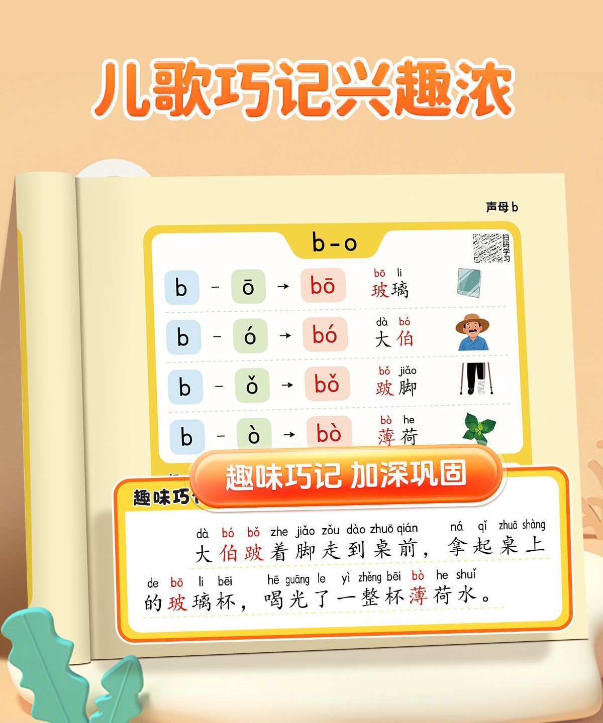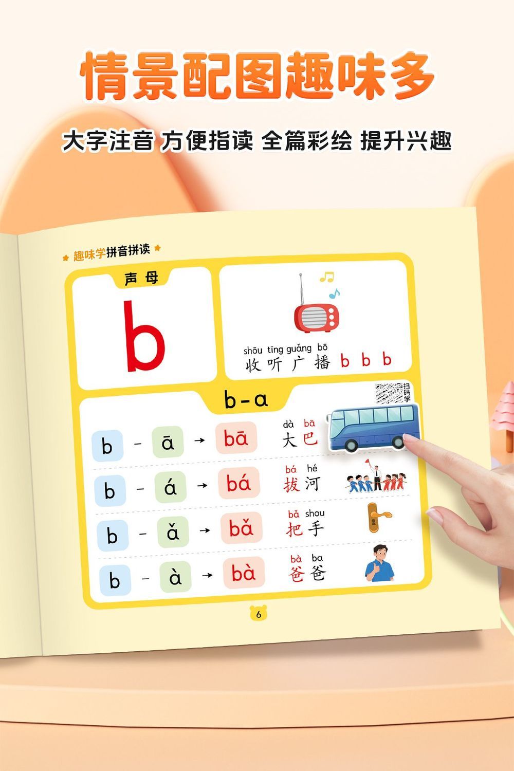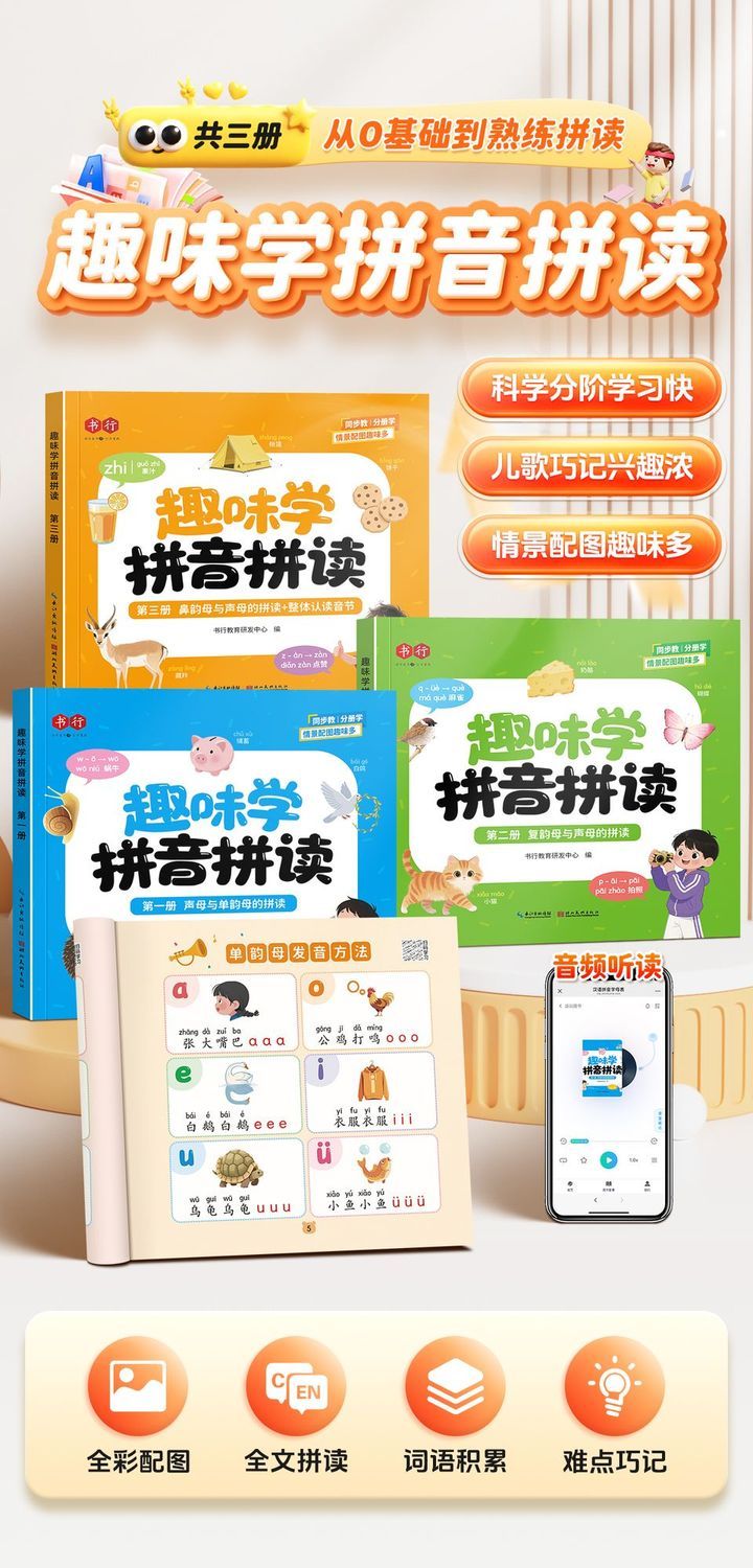 儿童趣味学拼音拼读启蒙书幼小衔接3-8岁汉语拼读技巧专项训练音频听读书