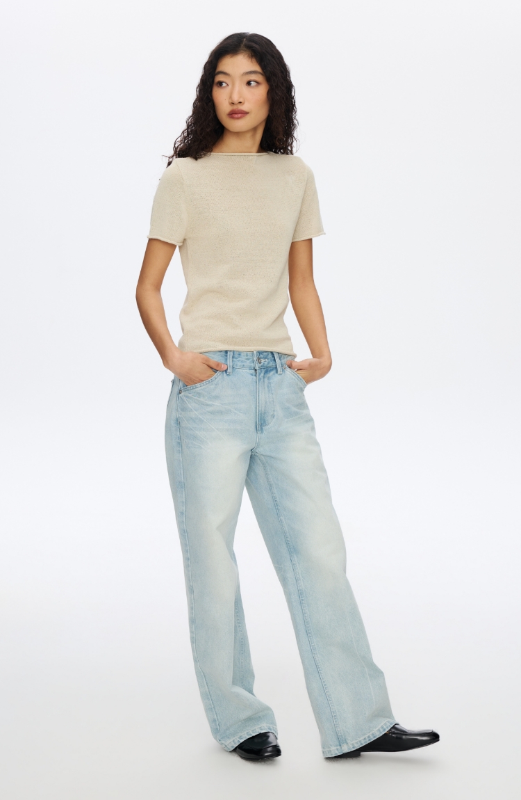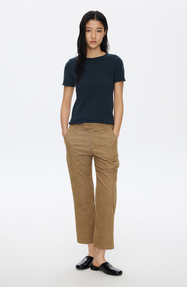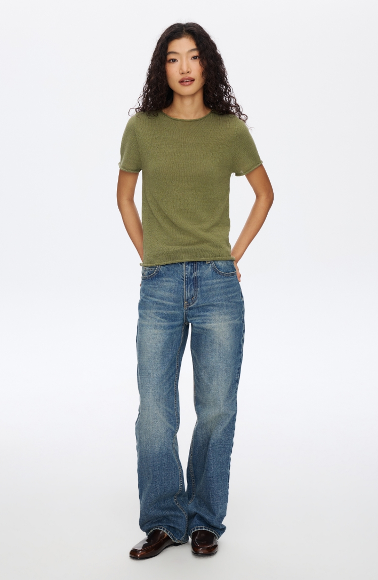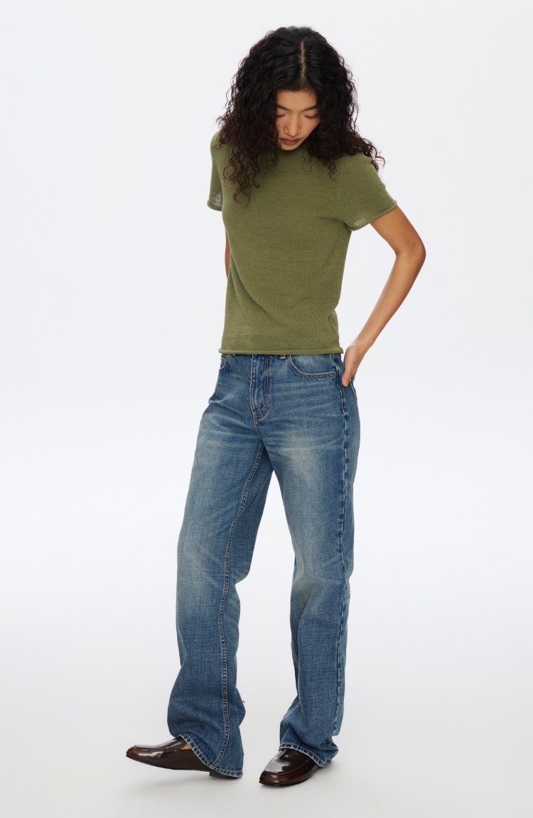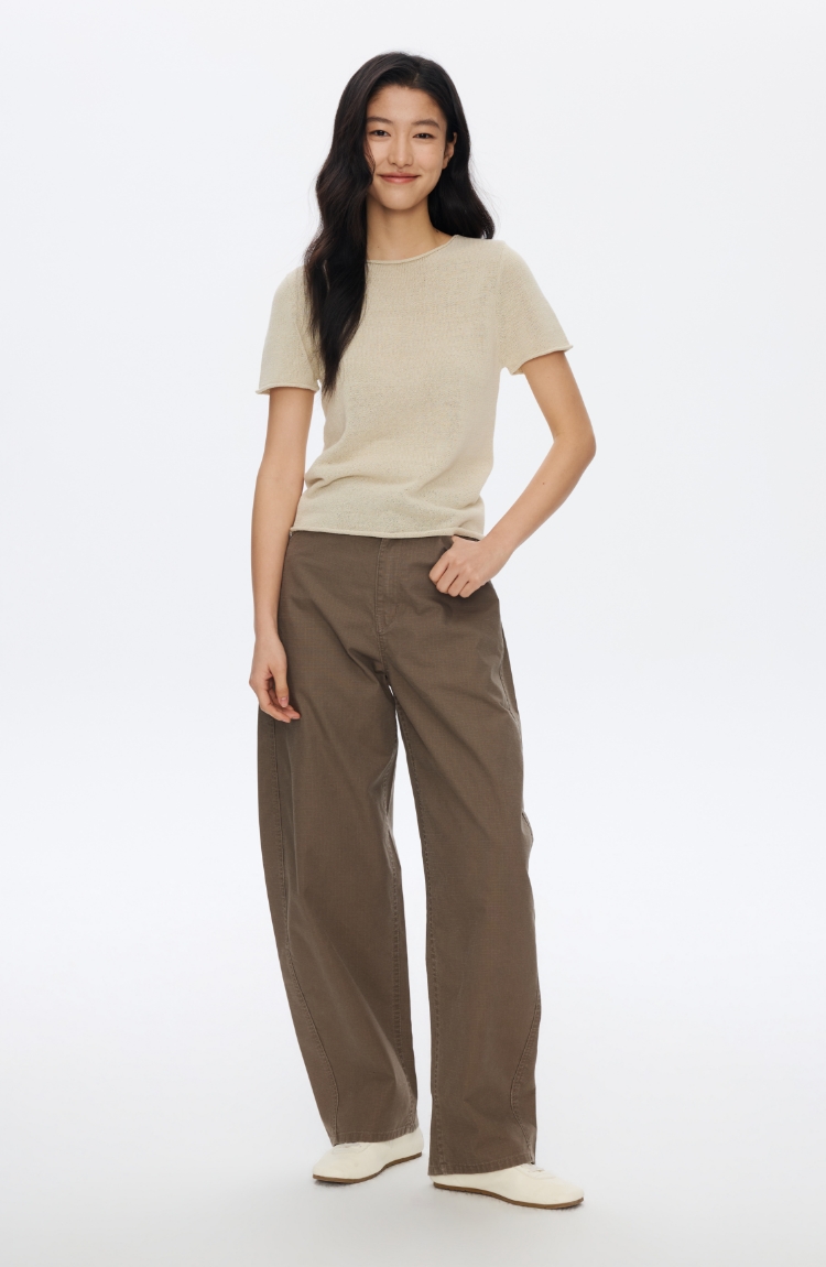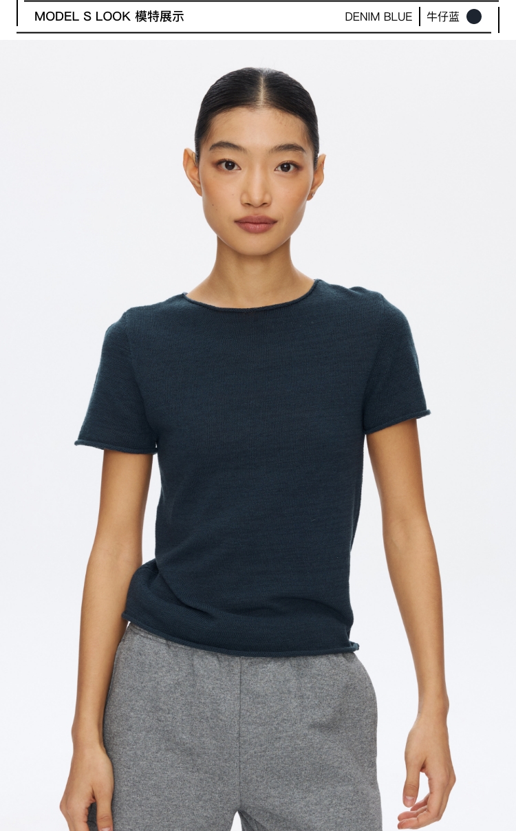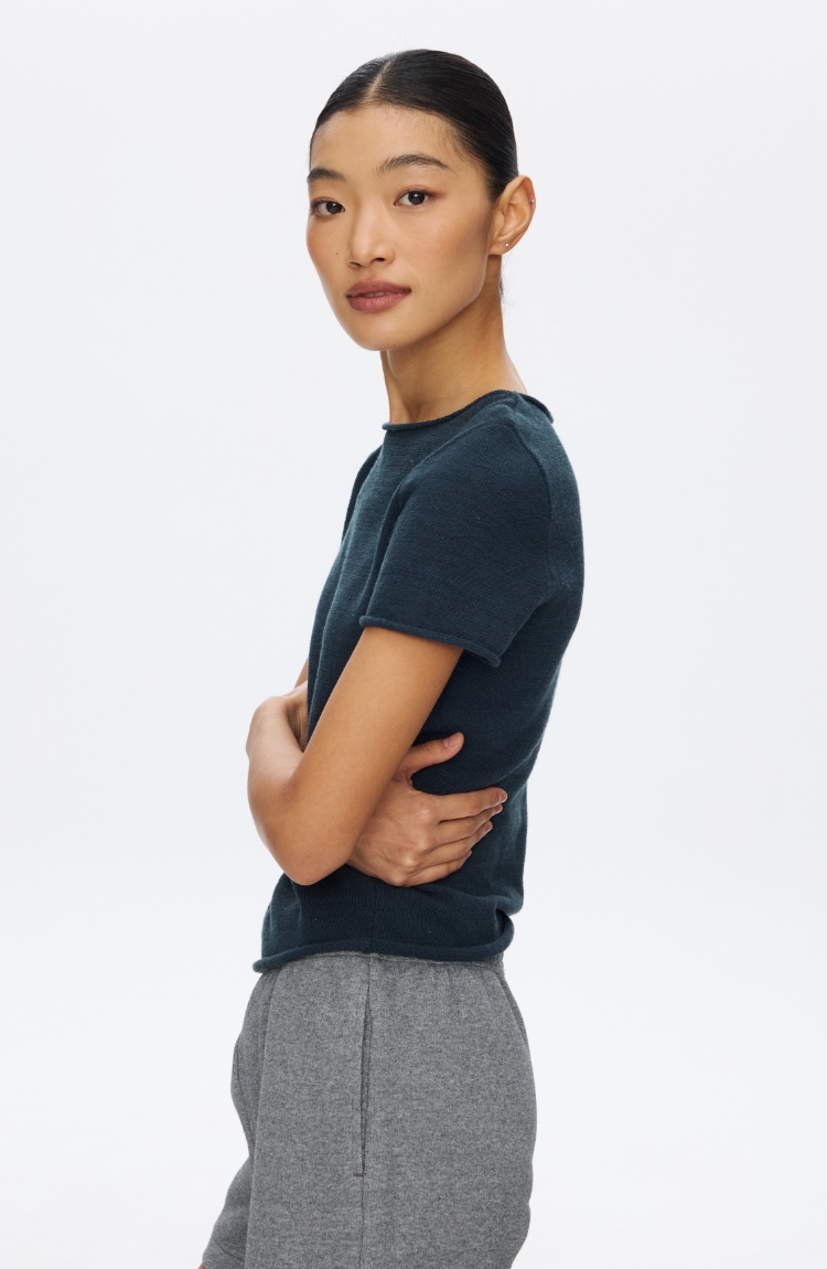 Oneup亚麻卷边针织正肩短袖