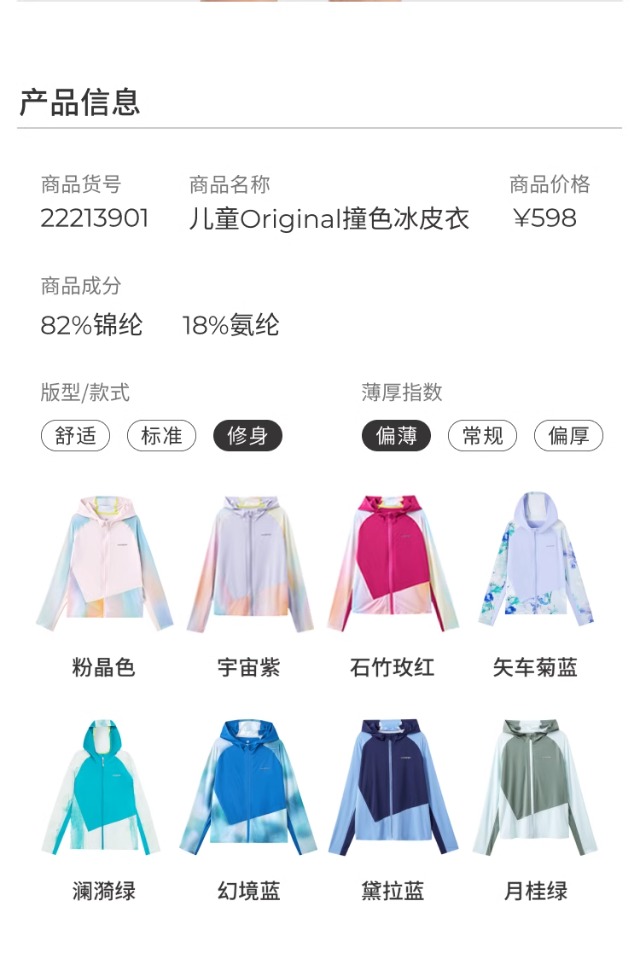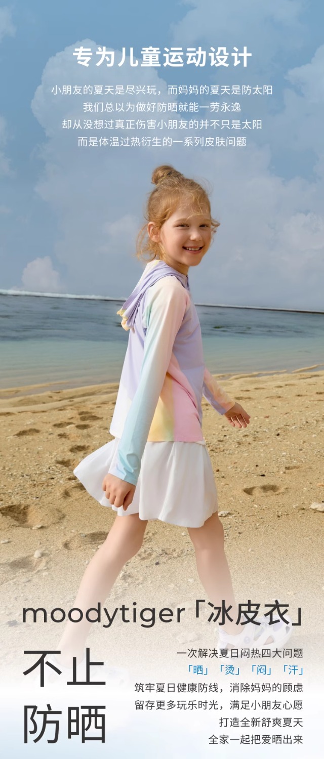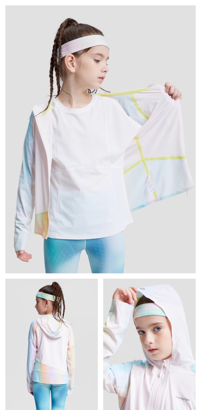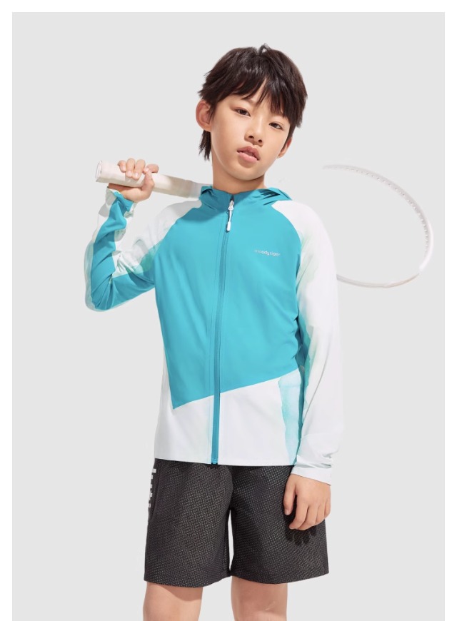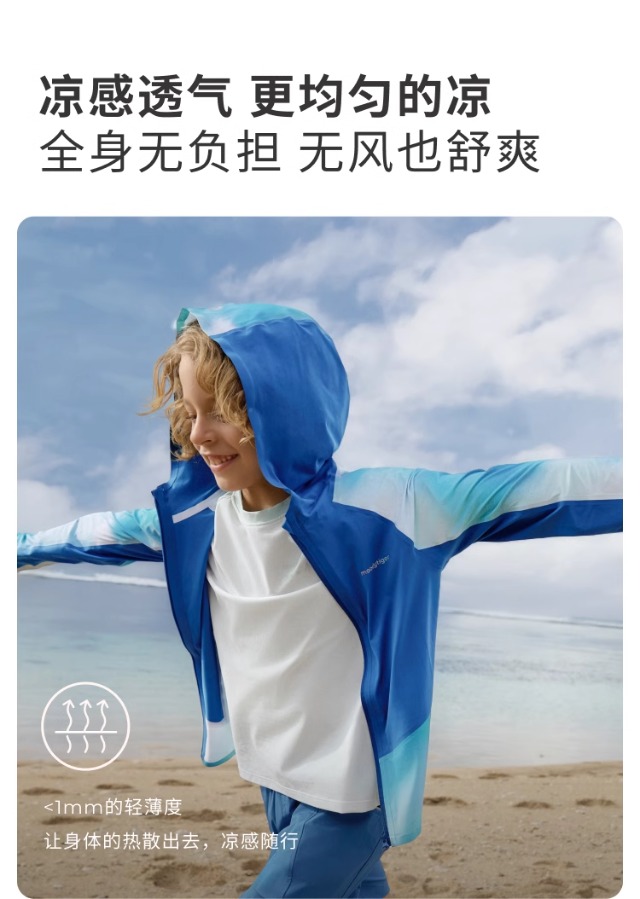 moodytiger儿童防晒衣24年夏季新款撞色连帽弹力轻薄皮肤衣42113903【DR】