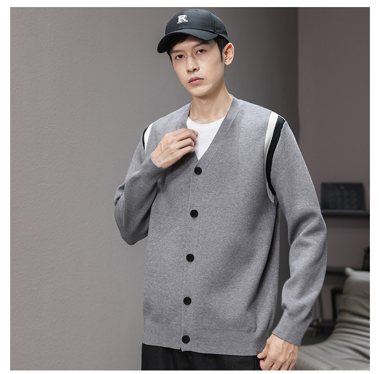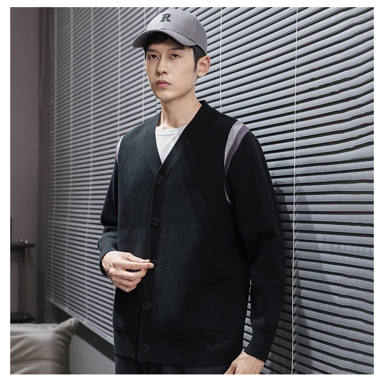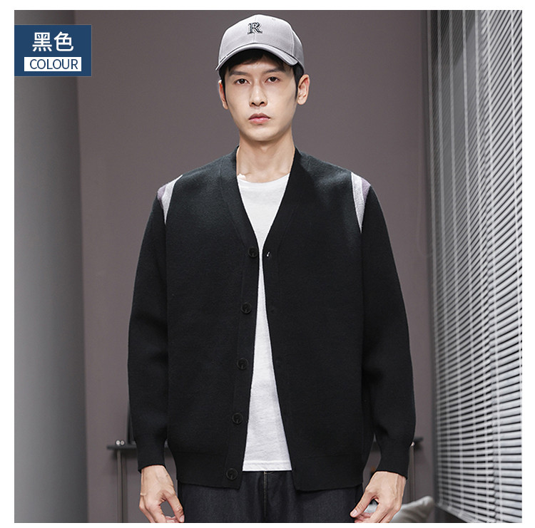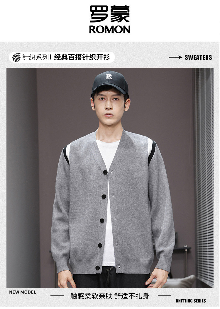 【撞色设计】罗蒙秋冬男士经典针织开衫男时尚百搭针织外套男舒适男针织衫