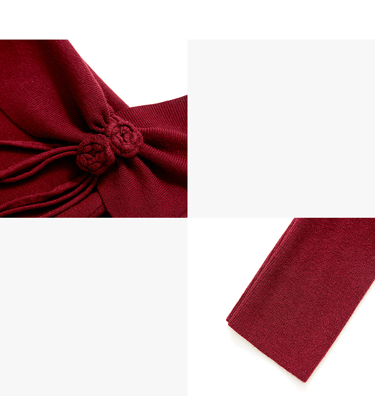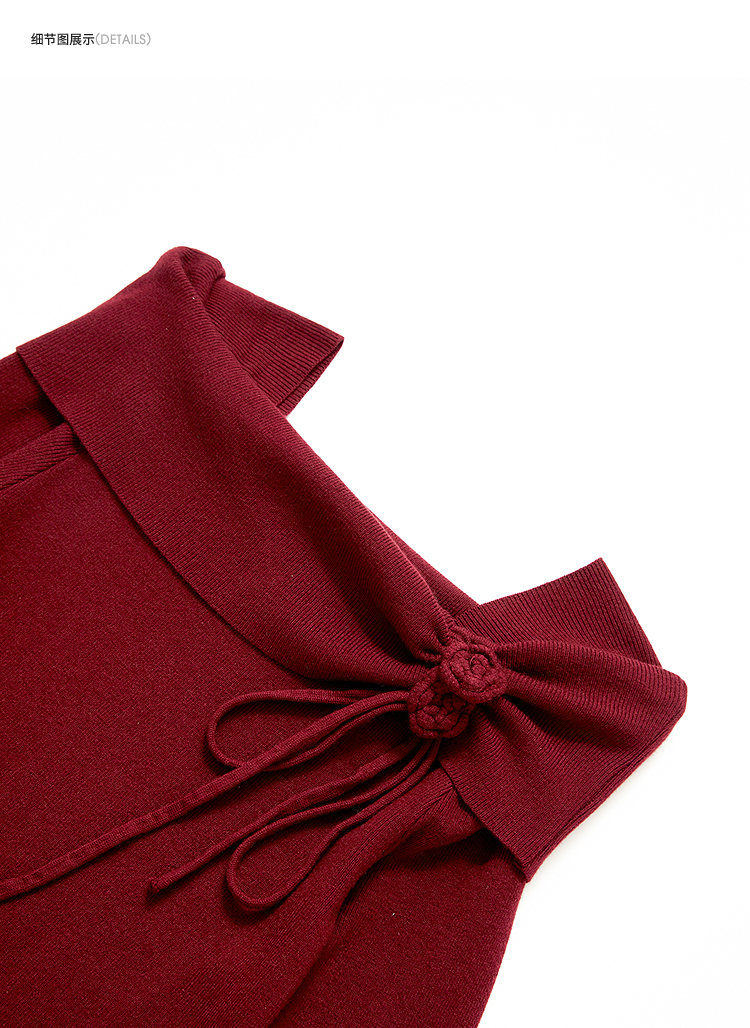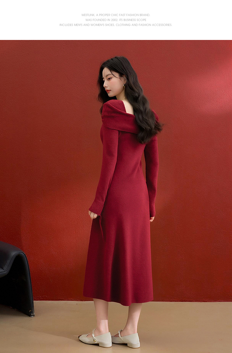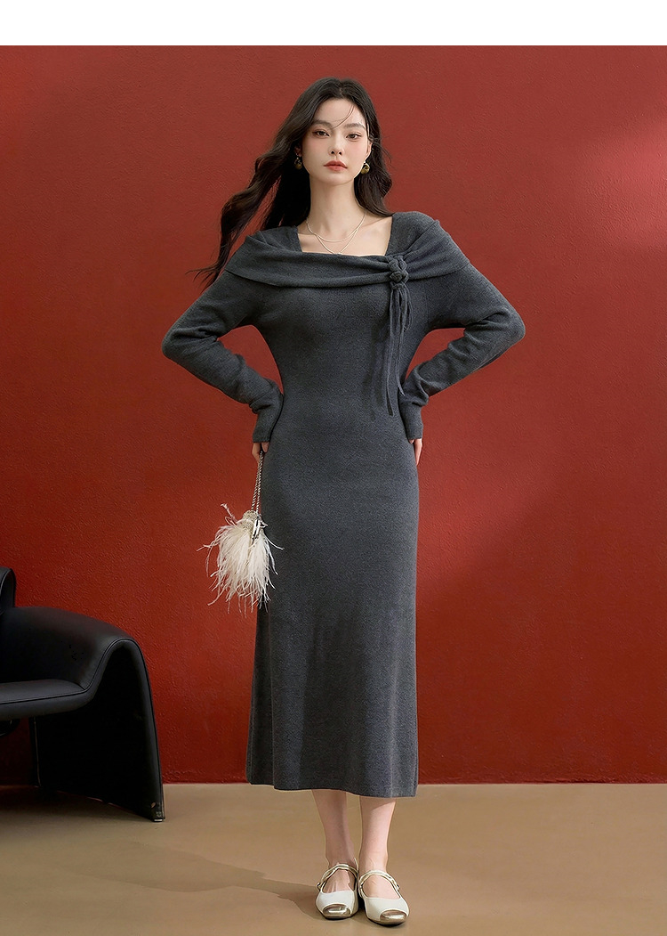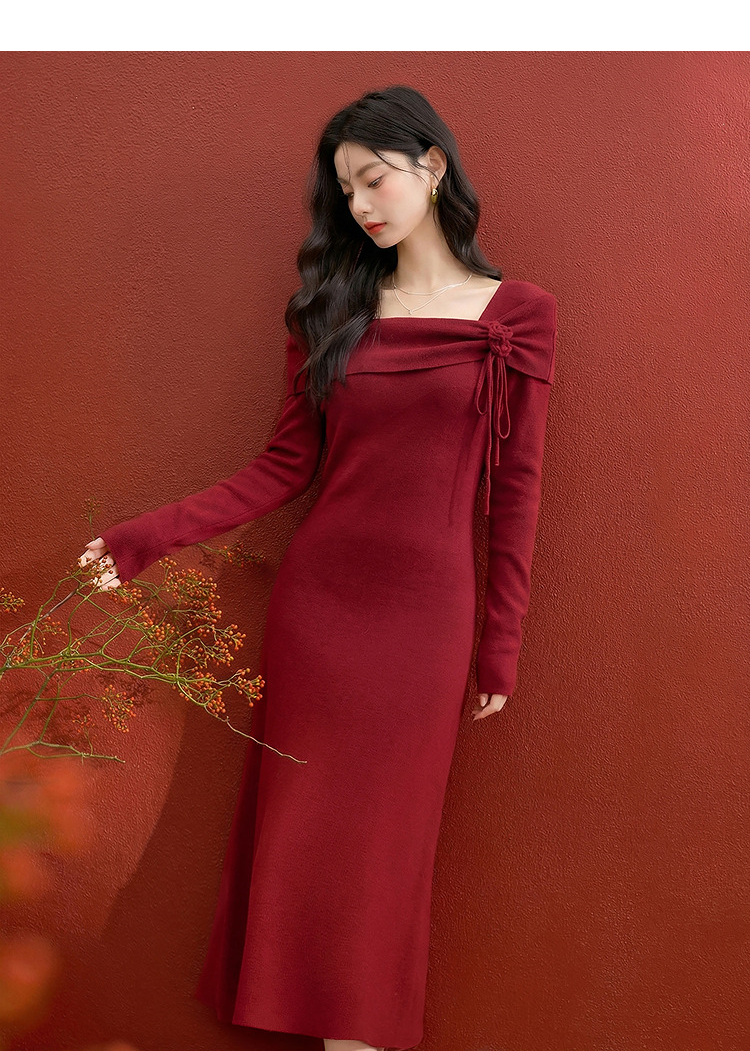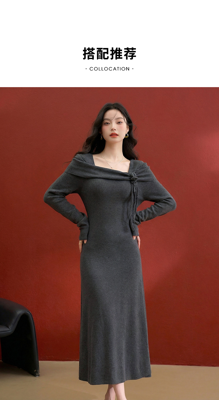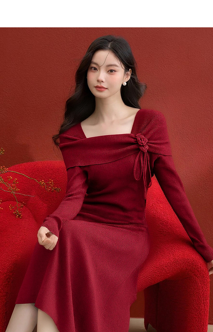 西遇法式长袖连衣裙女秋季新款名媛气质花朵针织收腰长裙V0055473