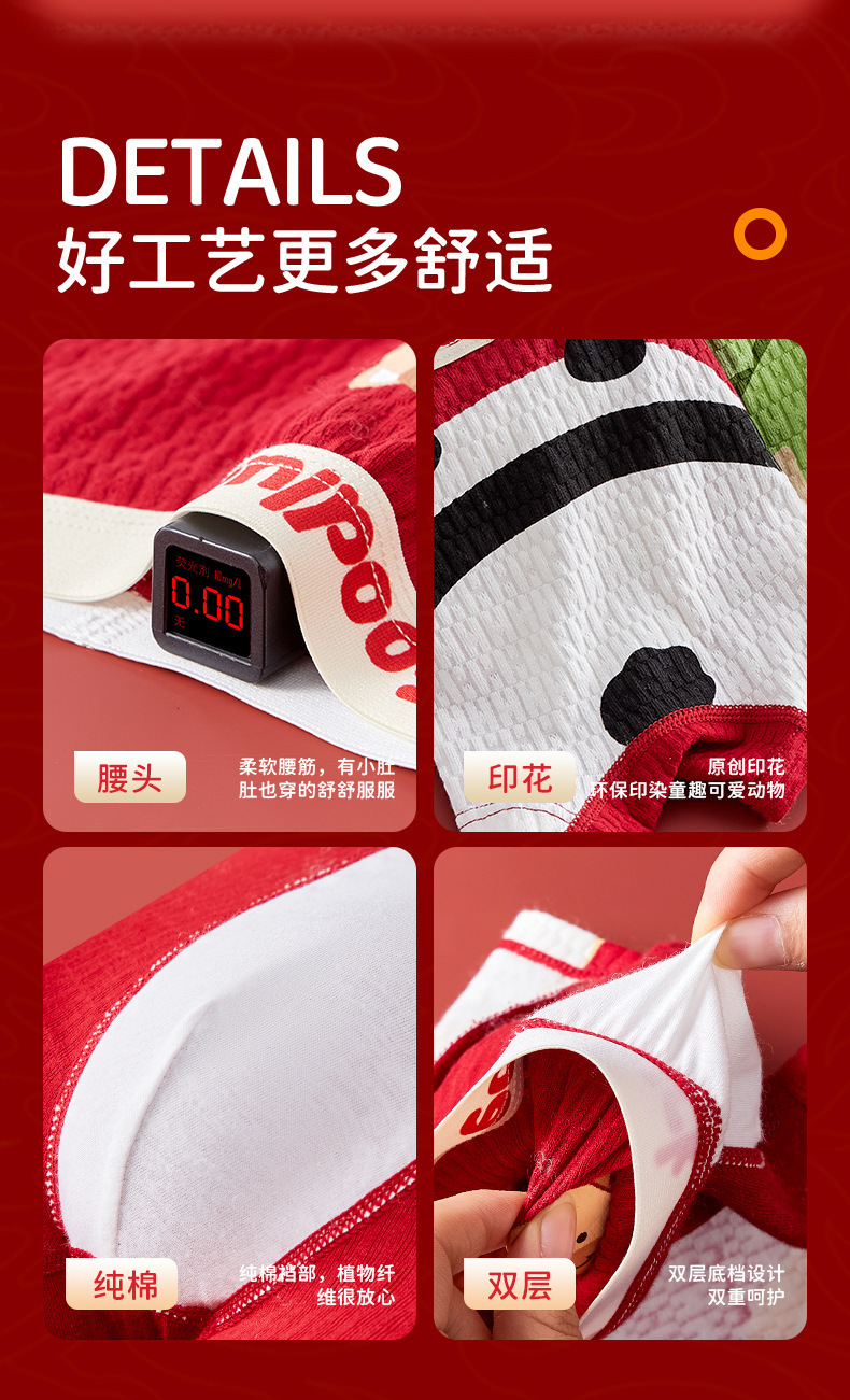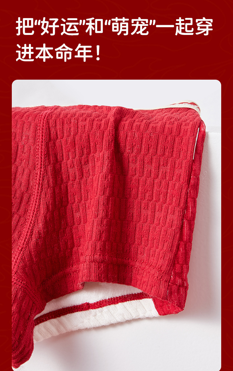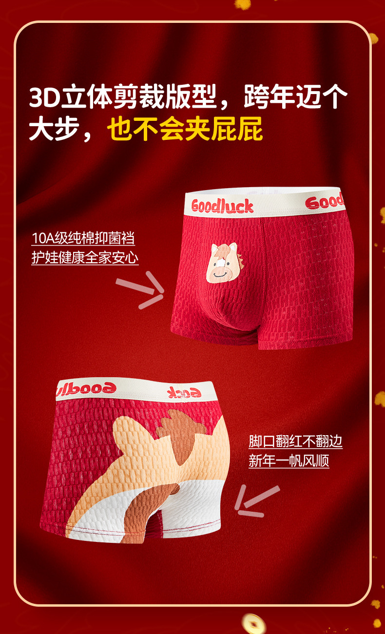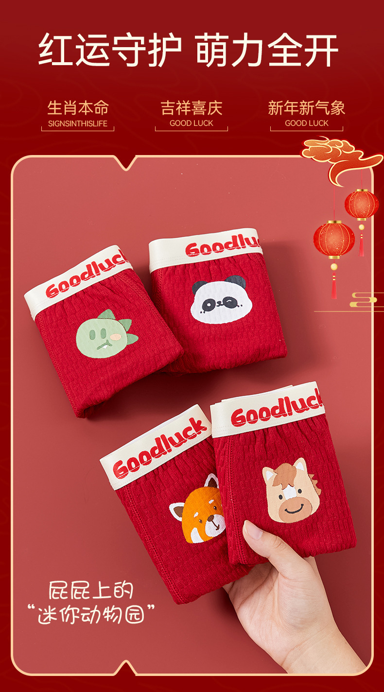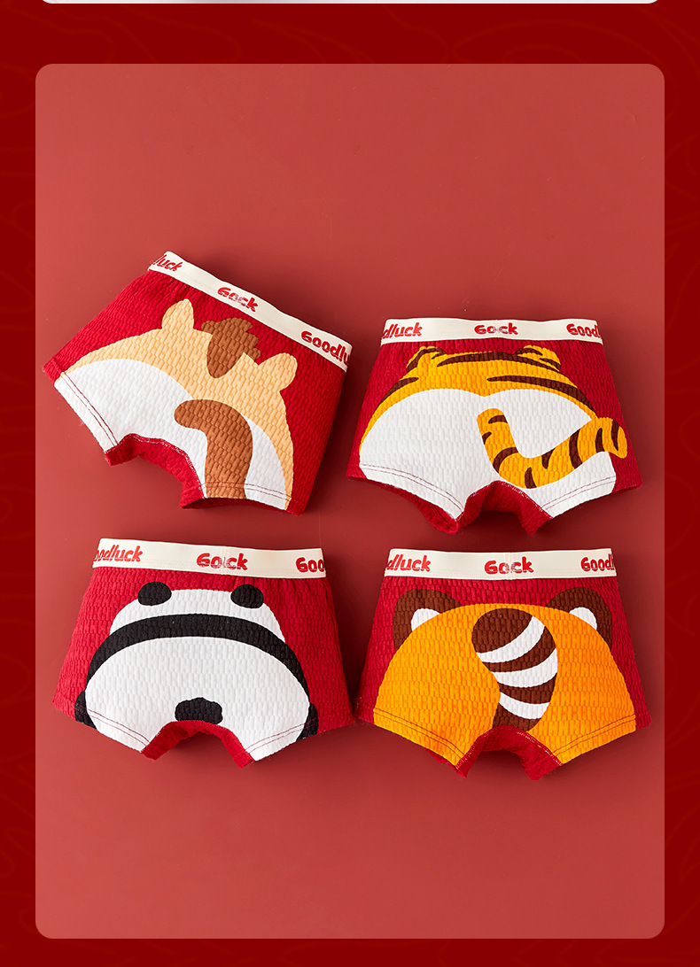 【本命年!4条装A类男童内裤 】纯棉a类棉大红平角裤 发育期男孩儿童中大童四角裤 本命新年纯棉内裤