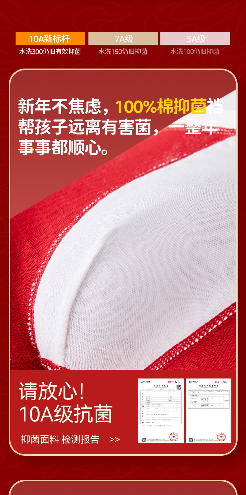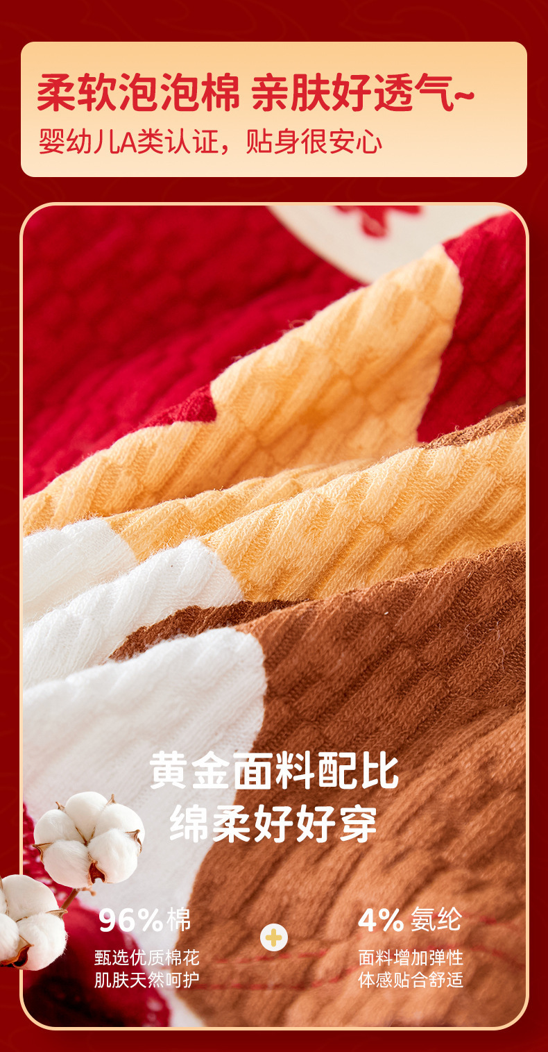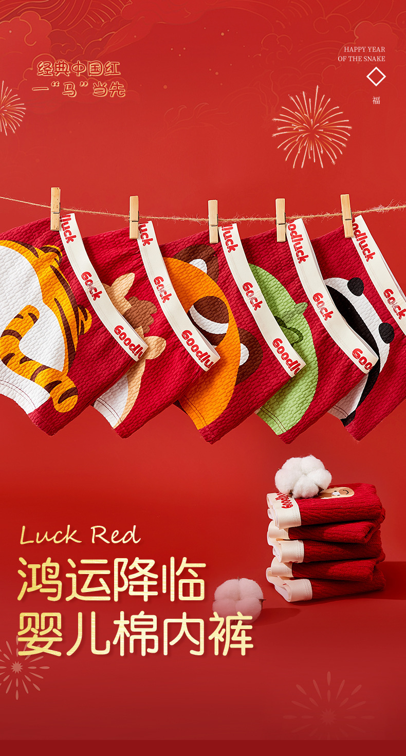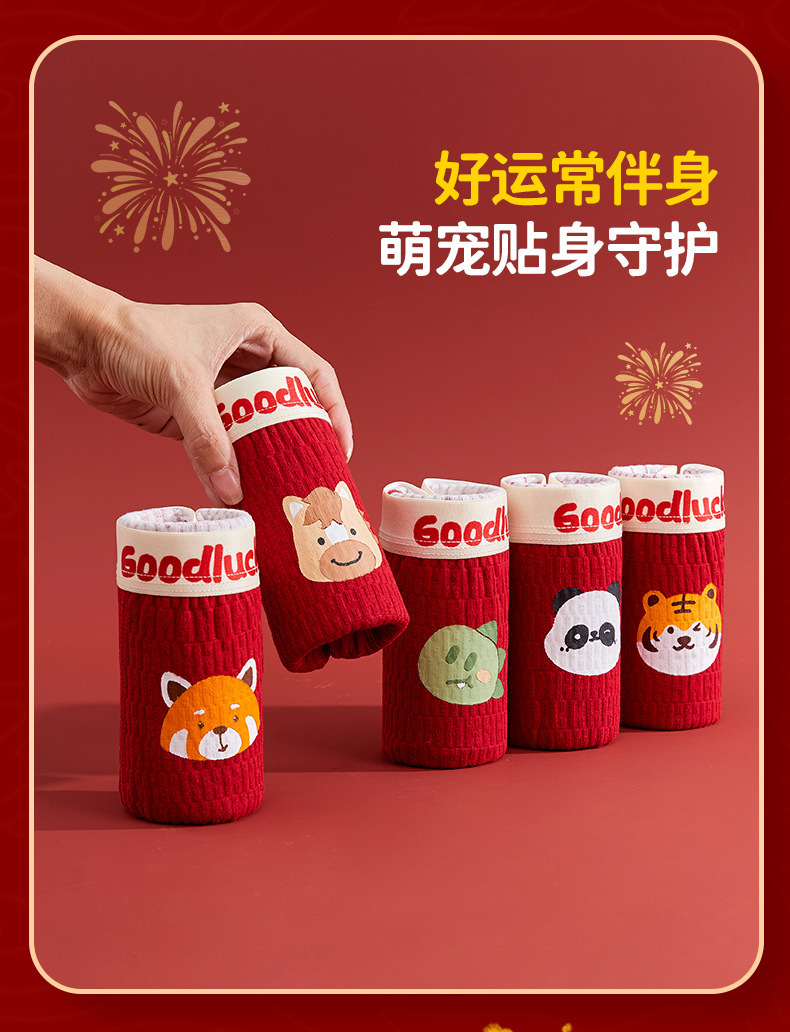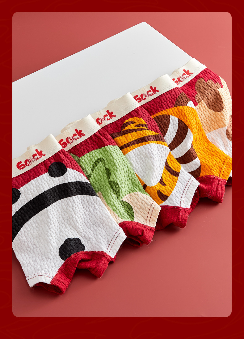 【本命年!4条装A类男童内裤 】纯棉a类棉大红平角裤 发育期男孩儿童中大童四角裤 本命新年纯棉内裤